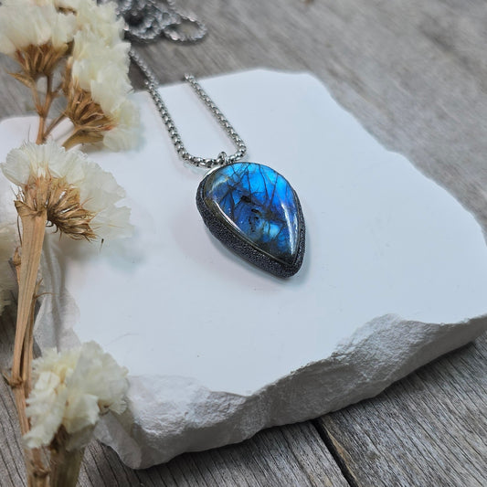 Labradorito pakabukas ant trumpesnės grandinėlės