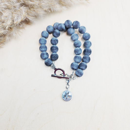 Dviejų eilių apyrankė su matiniais marmuro akmenukais