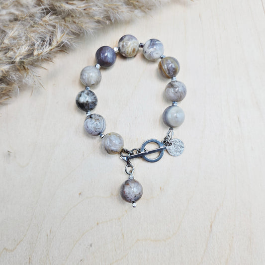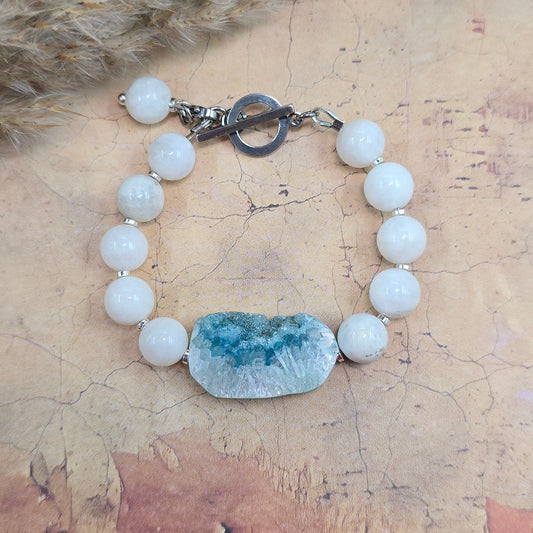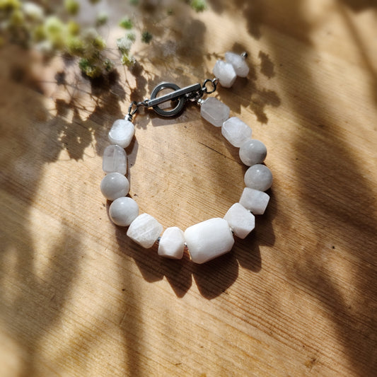 Apyrankė su agatu ir mėnulio akmens karoliukais