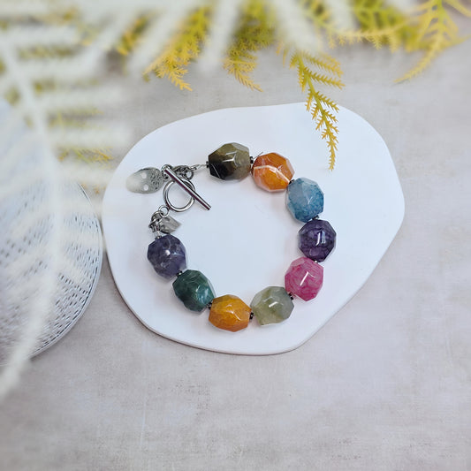 Svalvota ryški, stambių akmenukų apyrankė su agatais.