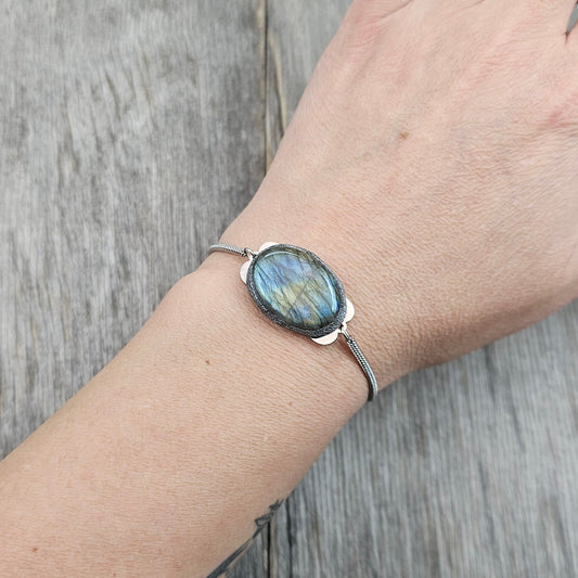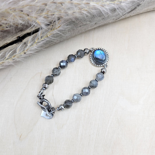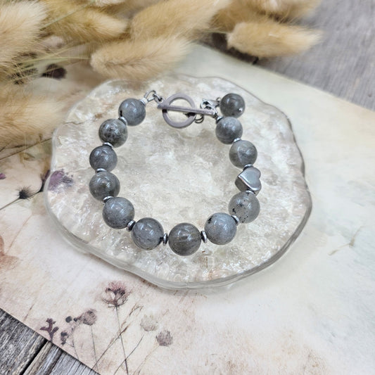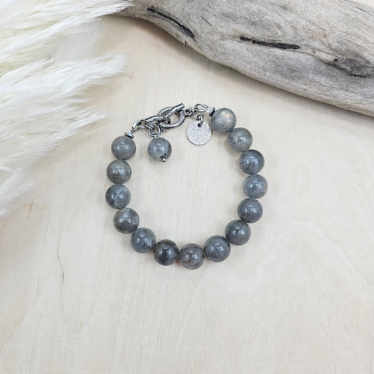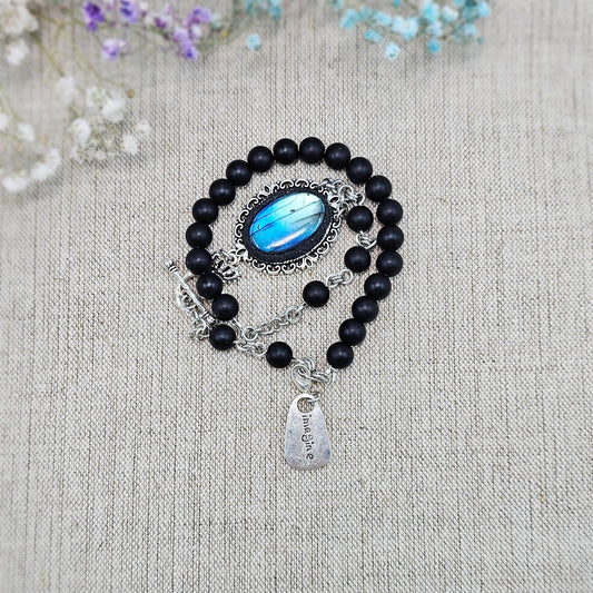 Klasikinė apyrankė su mėlynu labradoritu ir juodo hematito karoliukais