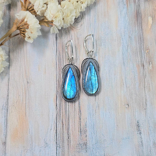 IšparduotaLabradorito auskarai 'Didesni lašai'