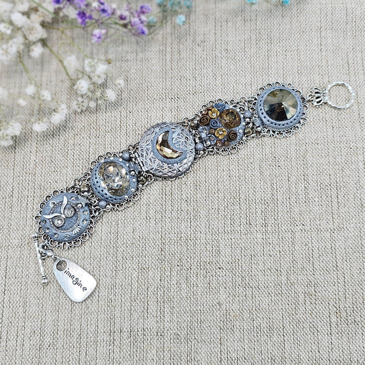 Konjako spalvos penkių dalių apyrankė su kristalais ir atsidarančiu medalionu