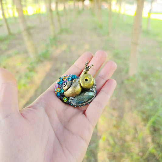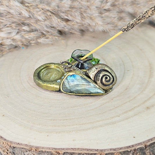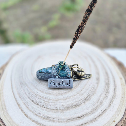 Smilkaline su labradoritu ir sraige (tinka kūginiams smilkalams)