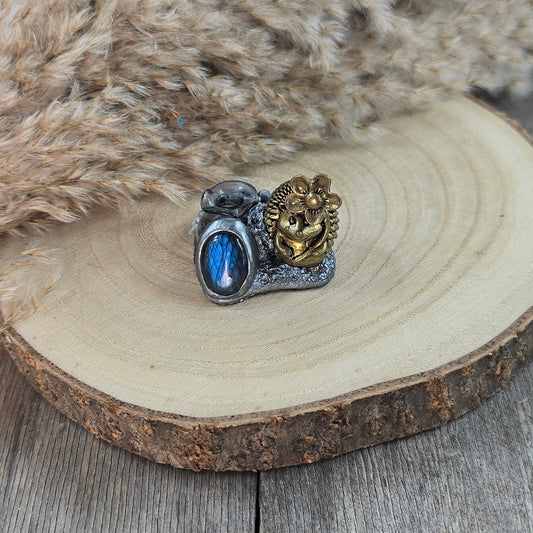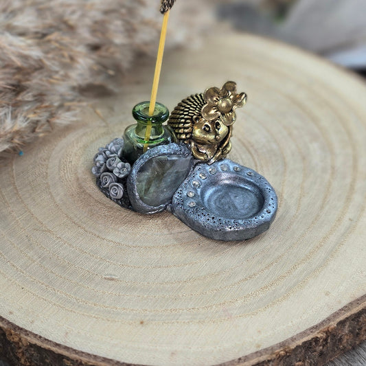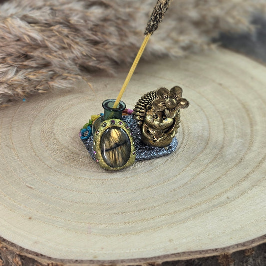 Smilkaline su labradoritu ir ežiuku (tinka kūginiams smilkalams)