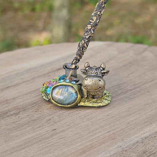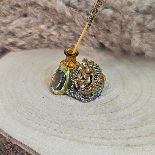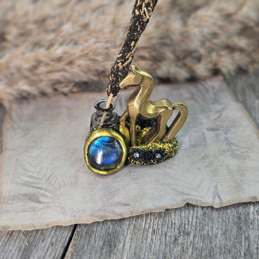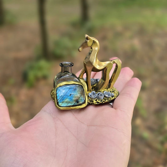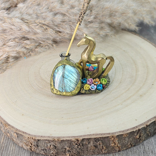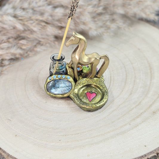 Smilkaline su labradoritu ir arkliuku - 2026m. simboliu (tinka kūginiams smilkalams)