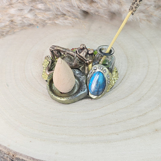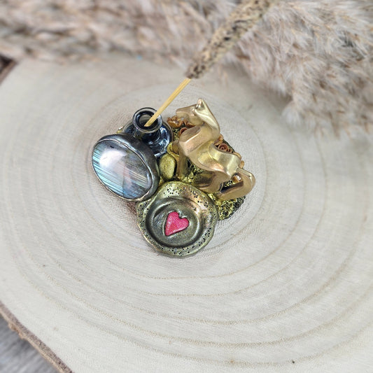 Smilkaline su labradoritu ir kačiukais (tinka kūginiams smilkalams)