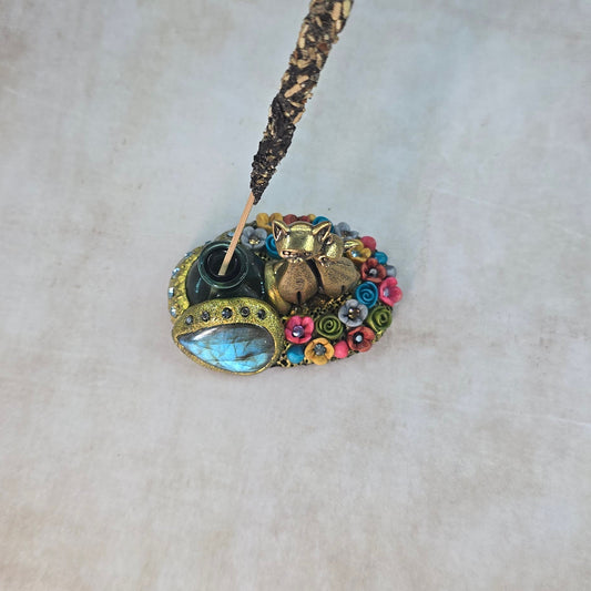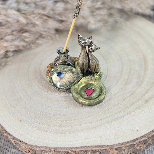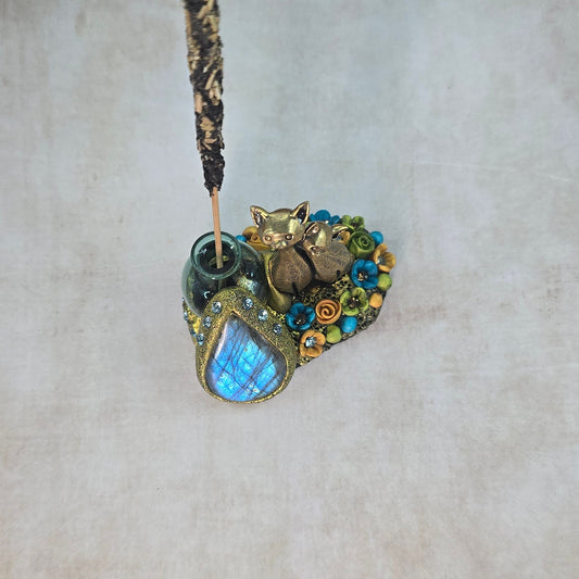 Smilkaline su labradoritu ir katinais (tinka kūginiams smilkalams)
