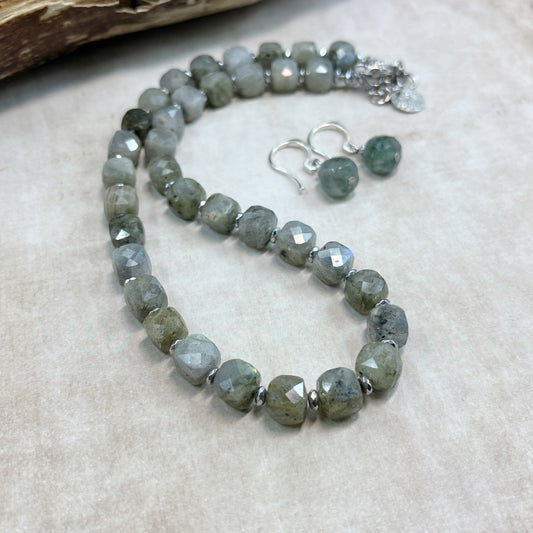 Trumpas vėrinys su labradoritu ir cirkoniu