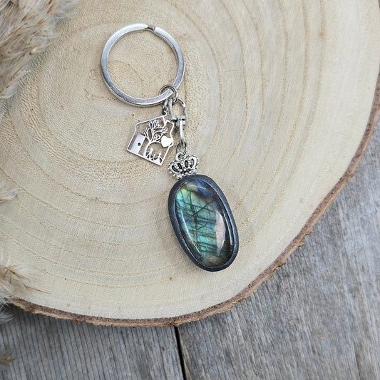 IšparduotaRaktų pakabukas su labradoritu (tamsus)