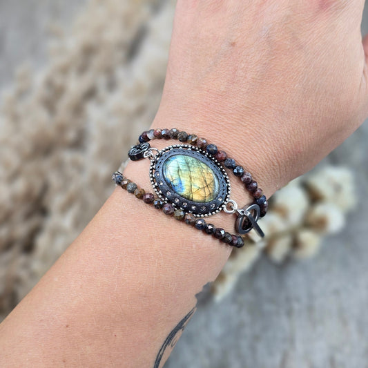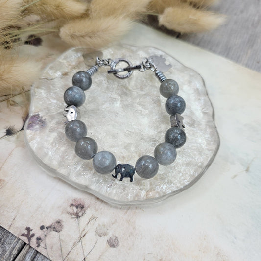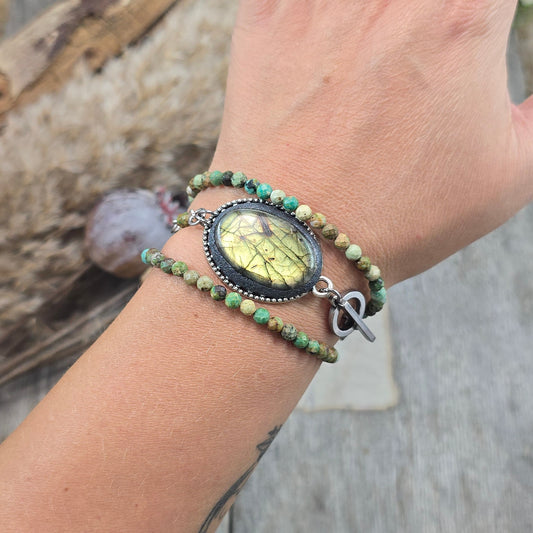IšparduotaLabradorito apyrankė su Afrikos turkiu