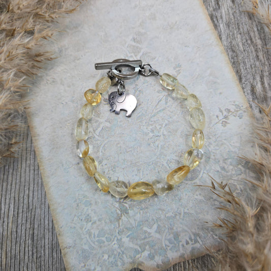 IšparduotaApyrankė su citrino akmenukais ir drambliuku
