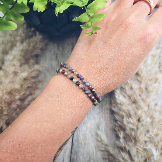 Dviejų eilių apyrankė su smulkiais korundo karoliukais