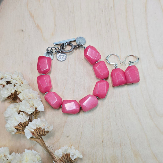 Komplektas su stambiais ryškiais rodonito akmenukais