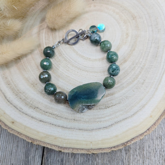 IšparduotaŽalsva apyrankė su agatu ir lavos akmenukais