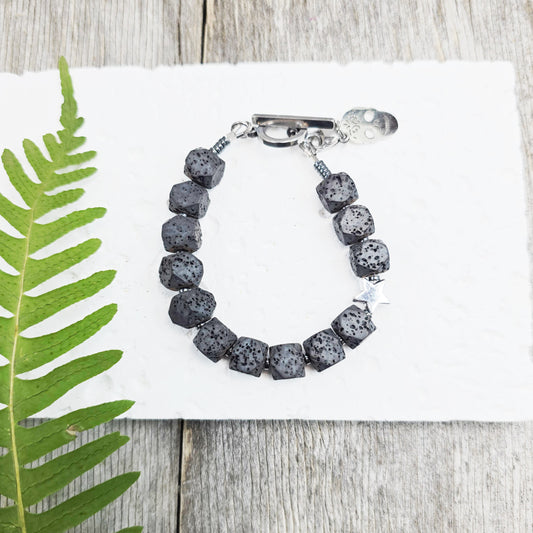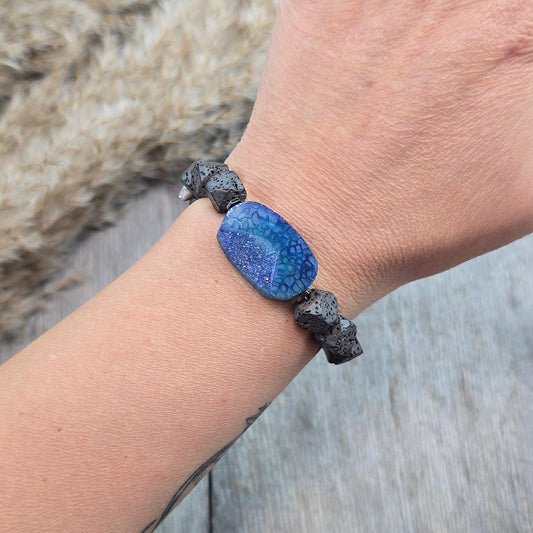 Mėlynai juoda apyrankė su agatu ir lavos akmenukais