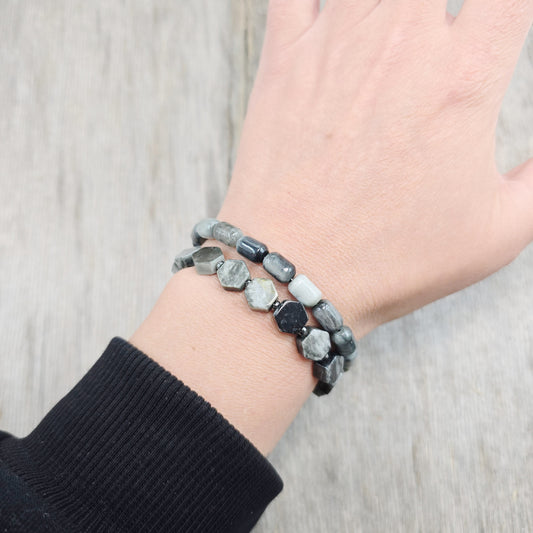 Dviejų eilių apyrankė su pilkai erelio akies akmenukais