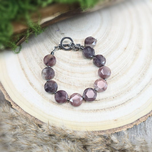 Apyrankė su rožiniu agatu ir lavos akmenukais