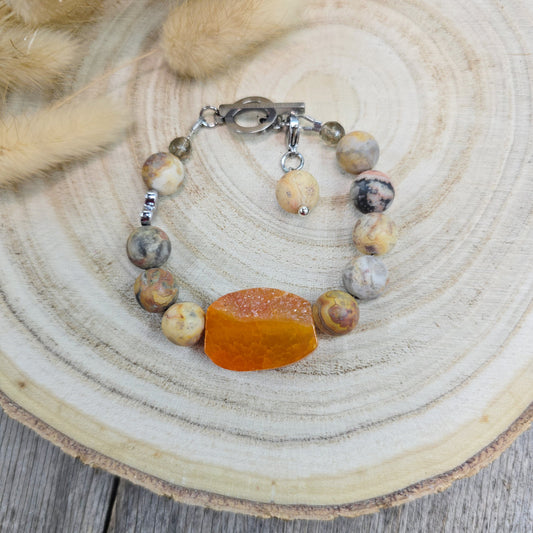 Rudų atspalvių apyrankė su agatu ir lavos akmenukais