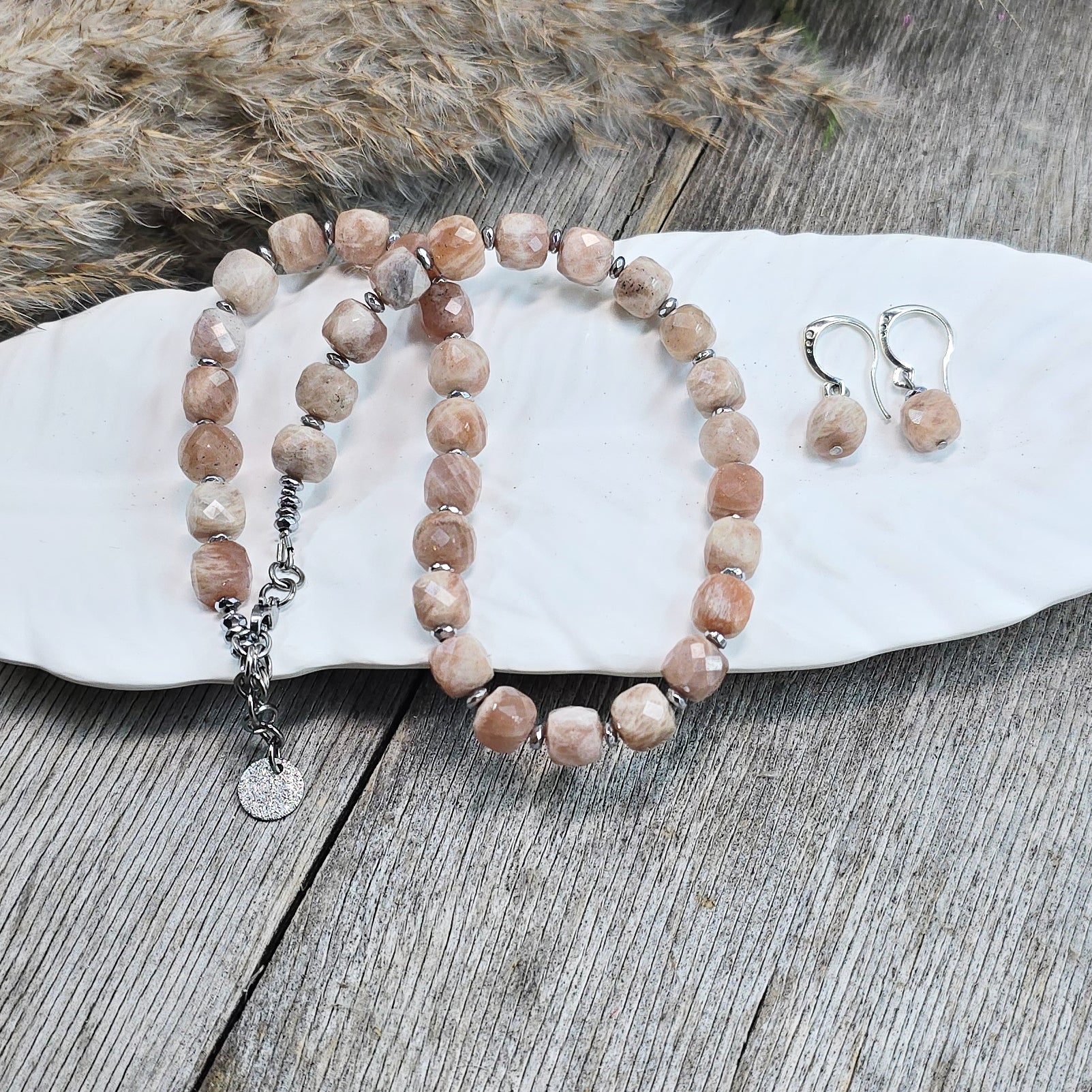 Pastelinis kūno spalvos komplektas iš saulės akmenukų. Galima pirkti atskirai.