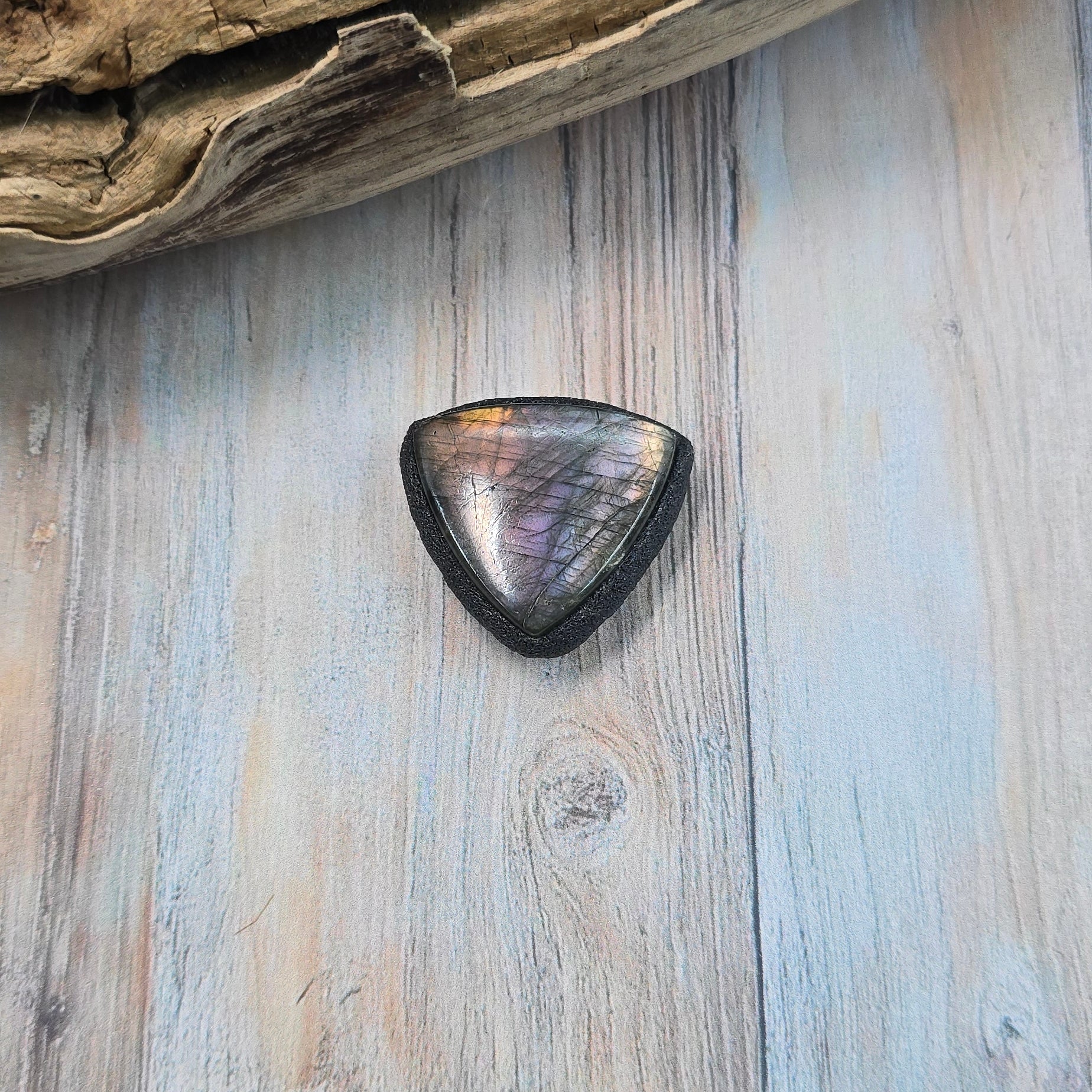 Šis nuostabus rankų darbo akmenukas su labradoritu sukurtas būti tavo kasdieniu palydovu ir apsaugos simboliu. Kiekvienas jo blyksnis – tai šviesos žinutė iš nematomo pasaulio. 💙