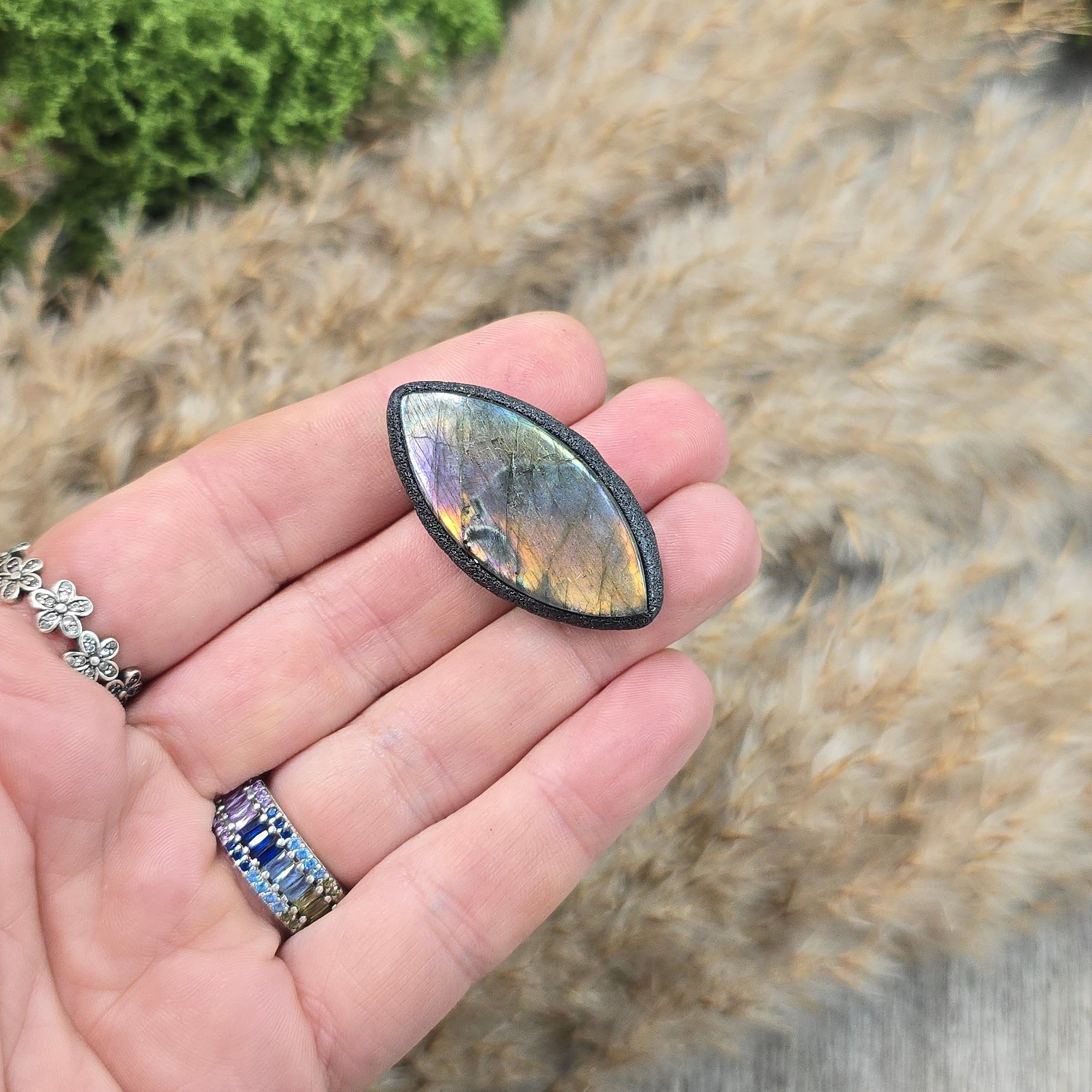 Šis nuostabus rankų darbo akmenukas su labradoritu sukurtas būti tavo kasdieniu palydovu ir apsaugos simboliu. Kiekvienas jo blyksnis – tai šviesos žinutė iš nematomo pasaulio. 💙
