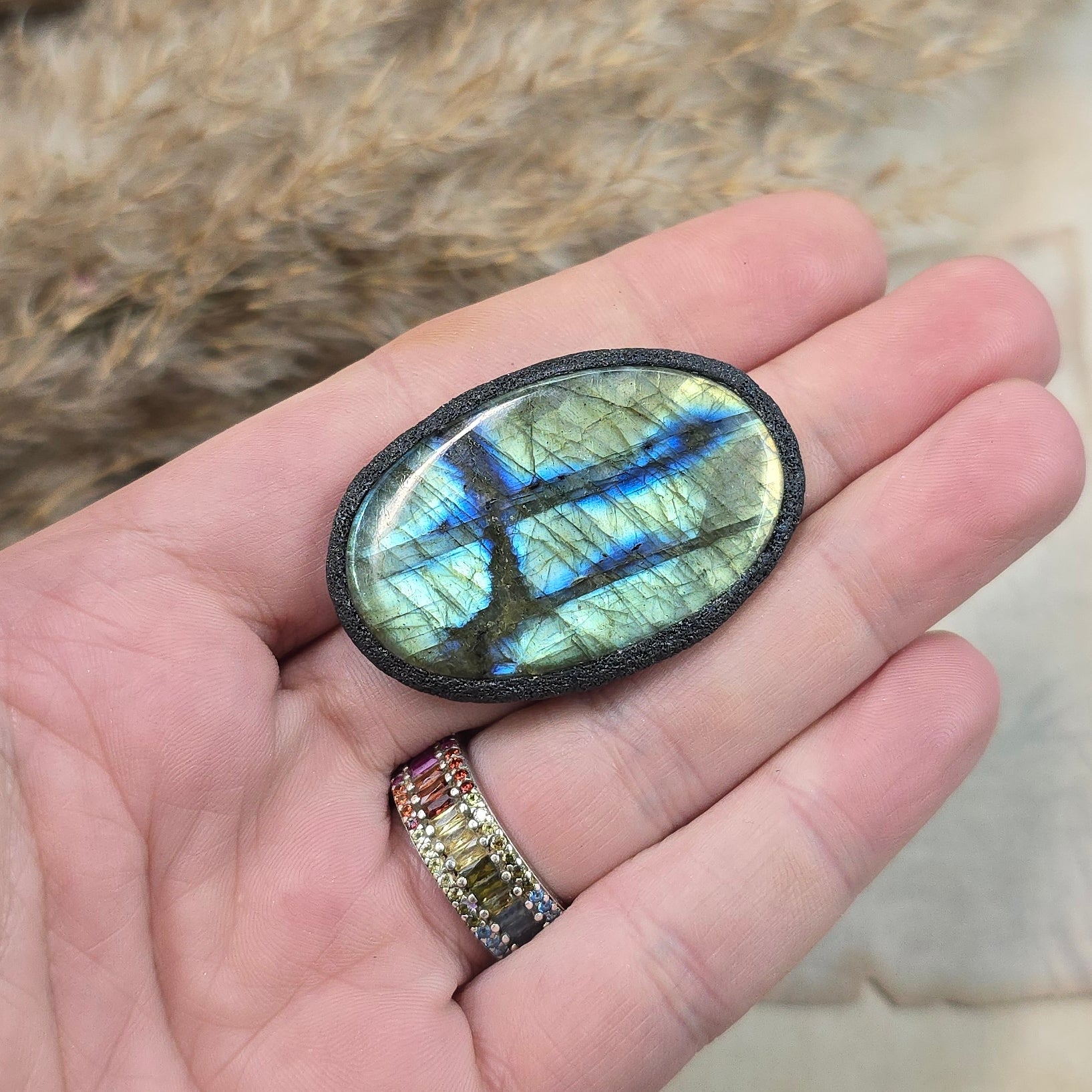Labradoritas – paslapčių ir vidinės magijos akmuo. Jis tarsi nematomas skydas saugo nuo neigiamos aplinkos energijos, padeda išlaikyti vidinę pusiausvyrą ir stiprina intuiciją. Toks akmenukas yra ne tik gražus, bet ir prasmingas – jis primena, kad esi saugus ir mylimas, net kai pasaulis ima suktis per greitai. 🌌