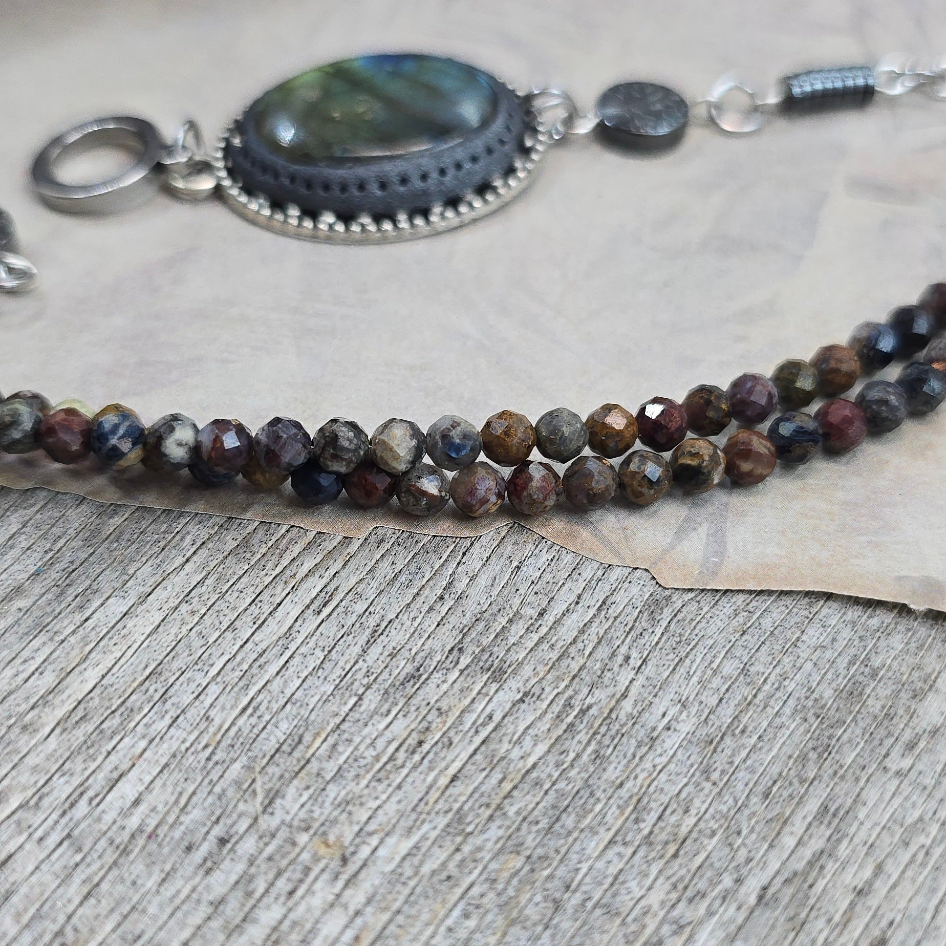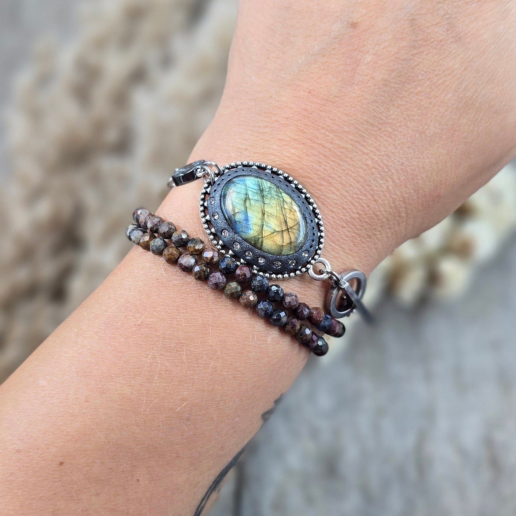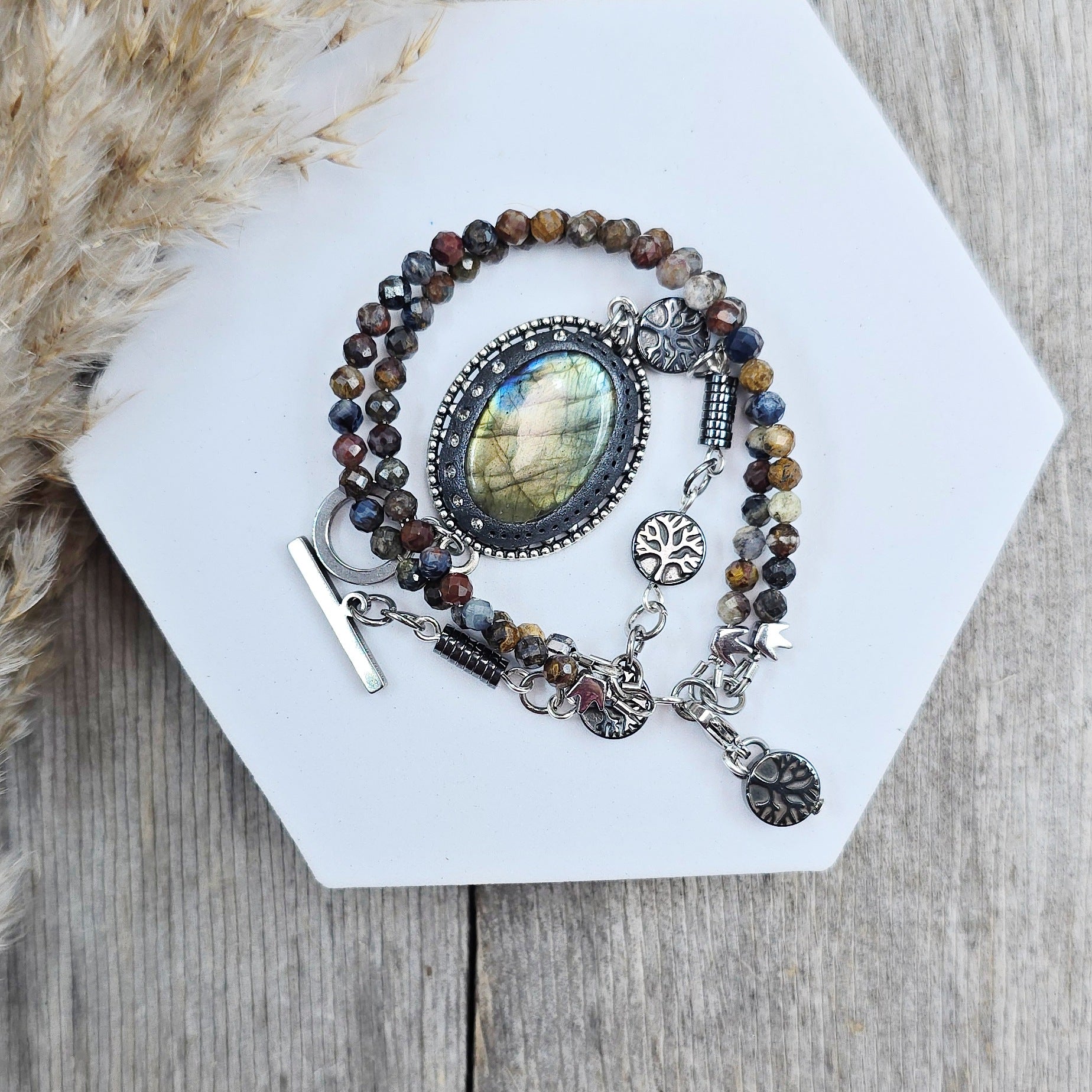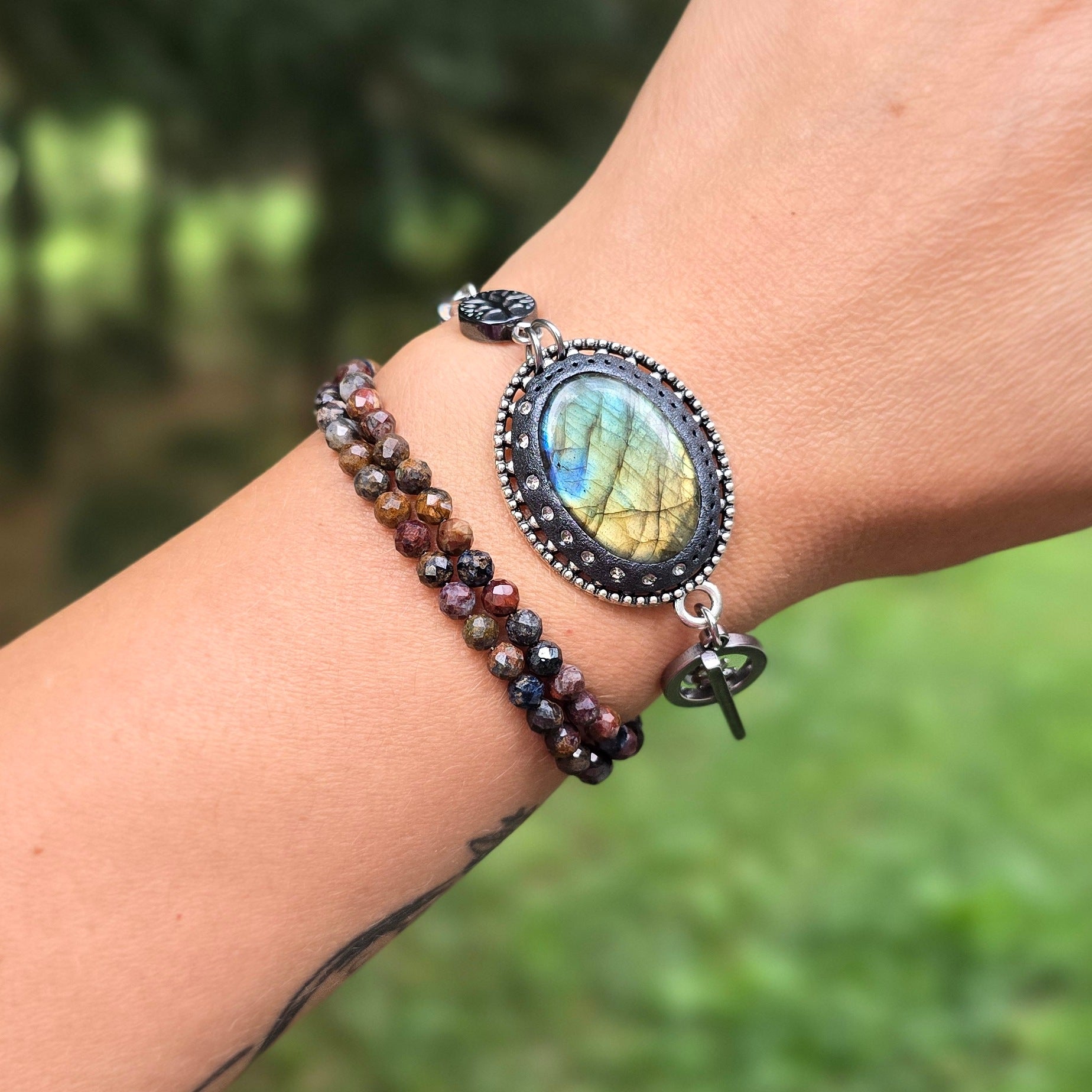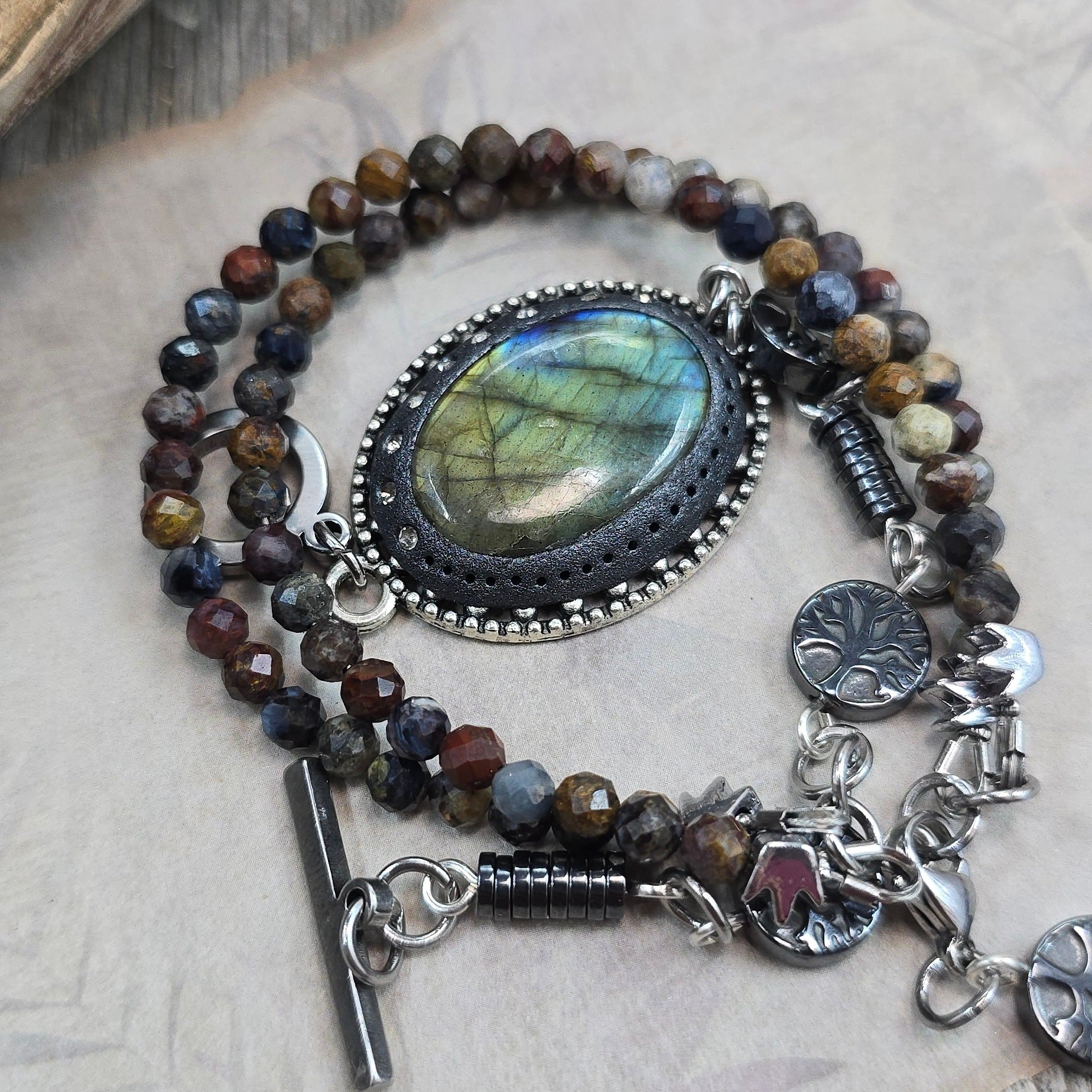 Labradoritas – paslaptingas ir galingas apsauginis akmuo, spinduliuojantis mistišką energiją. Jis padeda išsklaidyti negatyvias įtakas, pritraukia sėkmę ir suteikia vidinės stiprybės. Tai puikus palydovas einant į svarbų susitikimą ar lemtingą įvykį – jis apsaugo nuo nesklandumų ir sustiprina pasitikėjimą savimi. Be to, labradoritas puikiai tinka namų apsaugai, saugodamas erdvę nuo nepageidaujamų energijų ir nelaimių.
