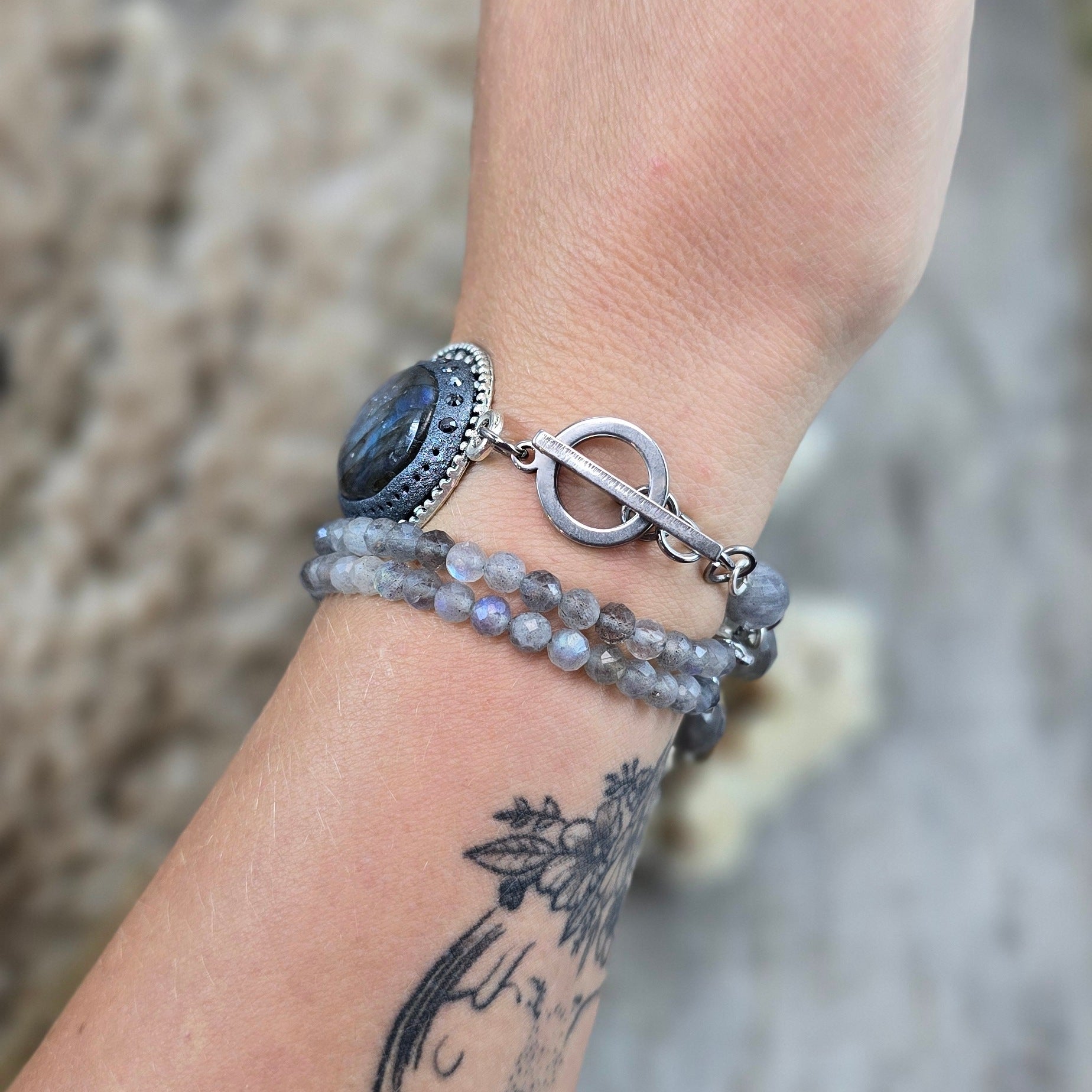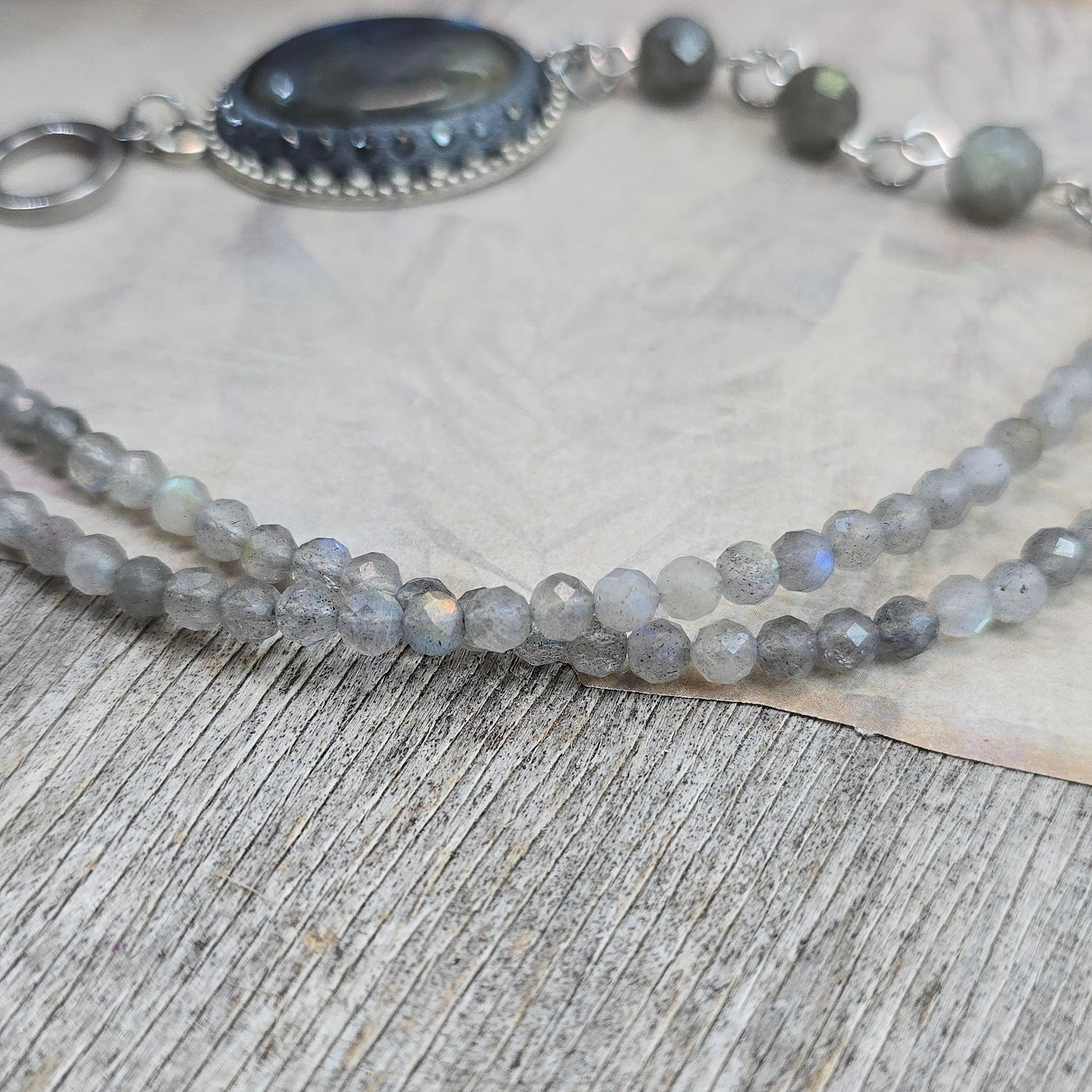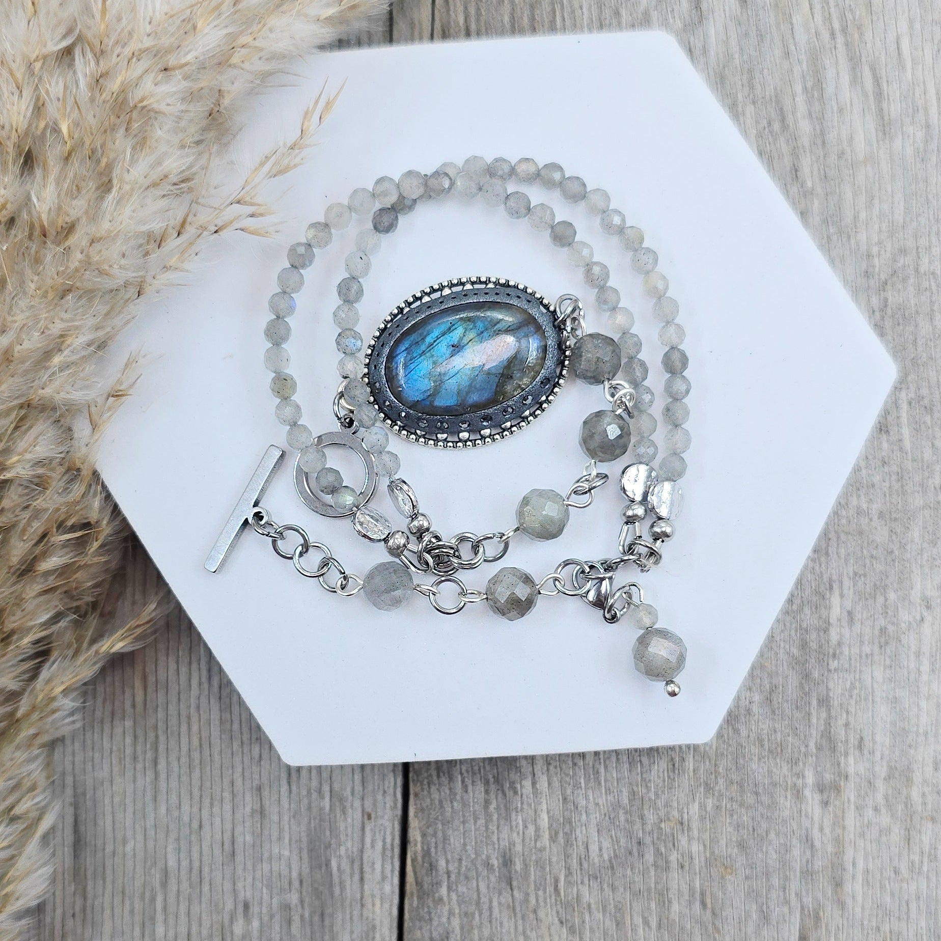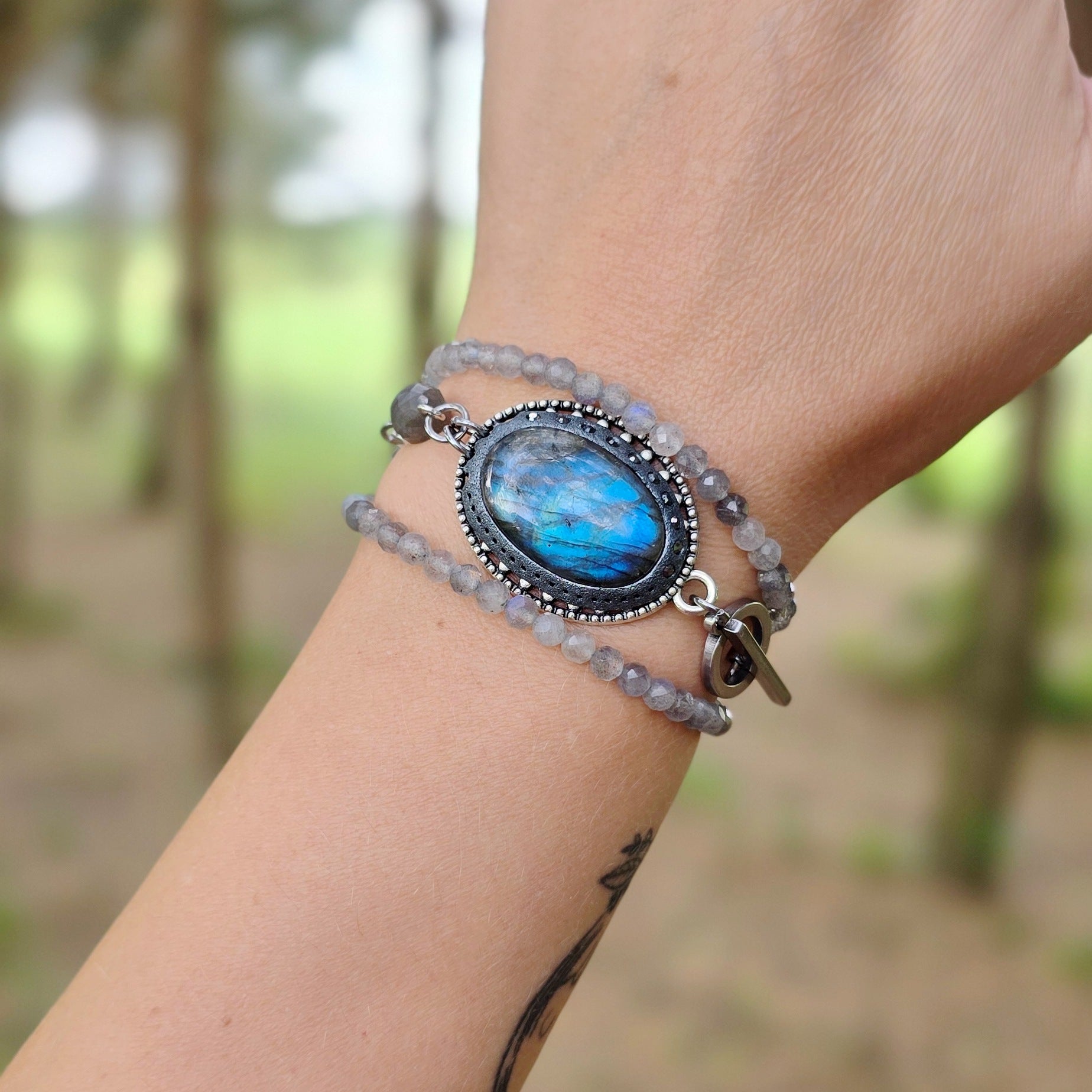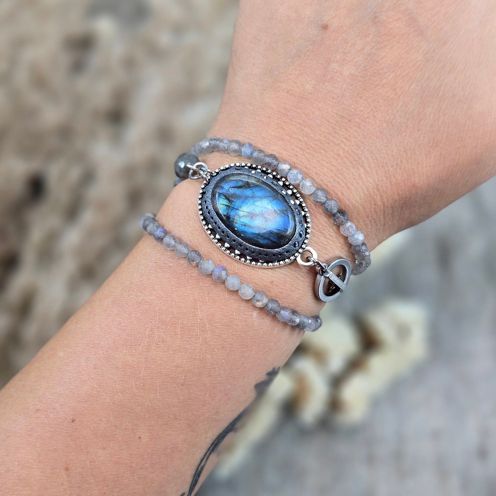 Labradoritas – paslaptingas ir galingas apsauginis akmuo, spinduliuojantis mistišką energiją. Jis padeda išsklaidyti negatyvias įtakas, pritraukia sėkmę ir suteikia vidinės stiprybės. Tai puikus palydovas einant į svarbų susitikimą ar lemtingą įvykį – jis apsaugo nuo nesklandumų ir sustiprina pasitikėjimą savimi. Be to, labradoritas puikiai tinka namų apsaugai, saugodamas erdvę nuo nepageidaujamų energijų ir nelaimių.