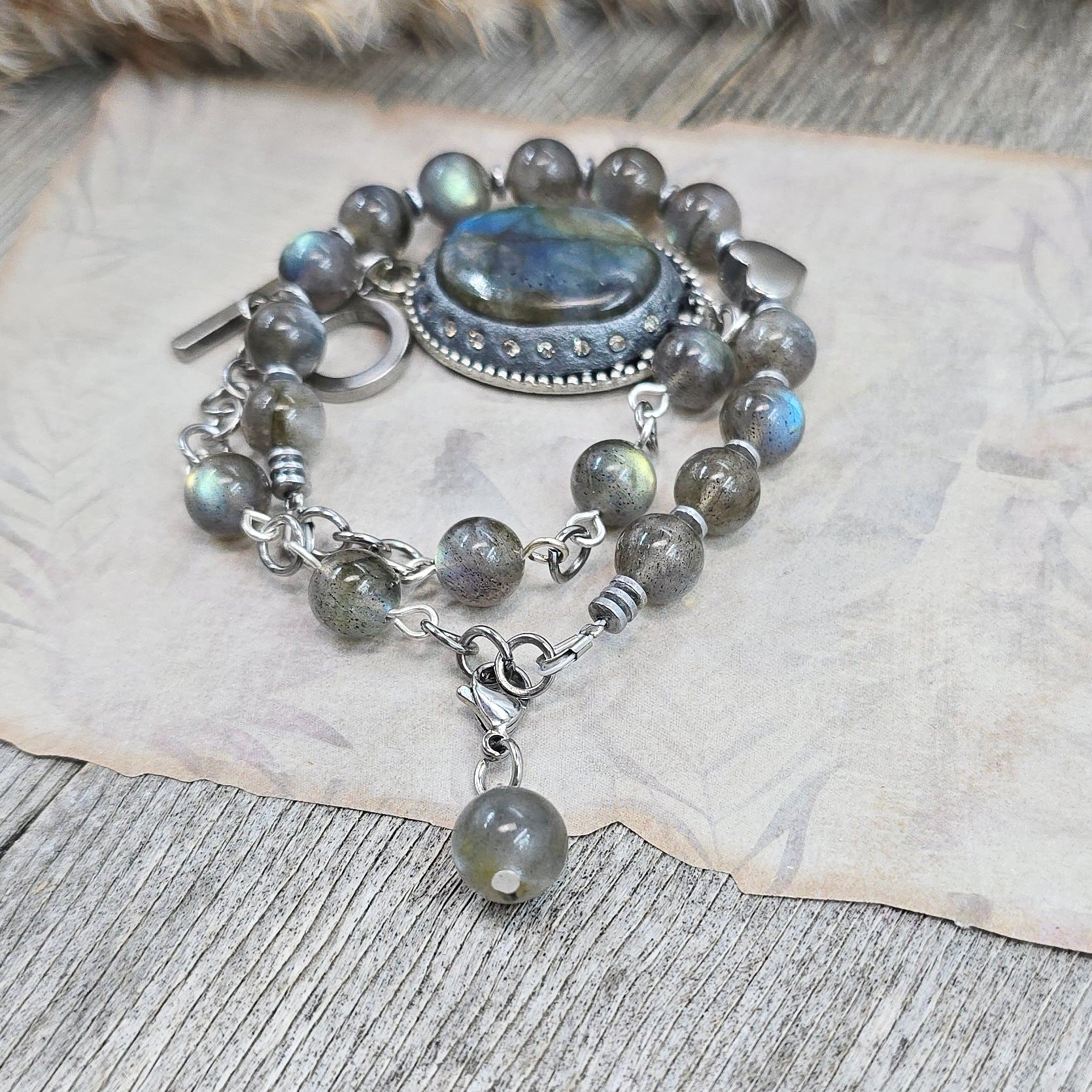 Labradoritas – paslaptingas ir galingas apsauginis akmuo, spinduliuojantis mistišką energiją. Jis padeda išsklaidyti negatyvias įtakas, pritraukia sėkmę ir suteikia vidinės stiprybės. Tai puikus palydovas einant į svarbų susitikimą ar lemtingą įvykį – jis apsaugo nuo nesklandumų ir sustiprina pasitikėjimą savimi. Be to, labradoritas puikiai tinka namų apsaugai, saugodamas erdvę nuo nepageidaujamų energijų ir nelaimių.