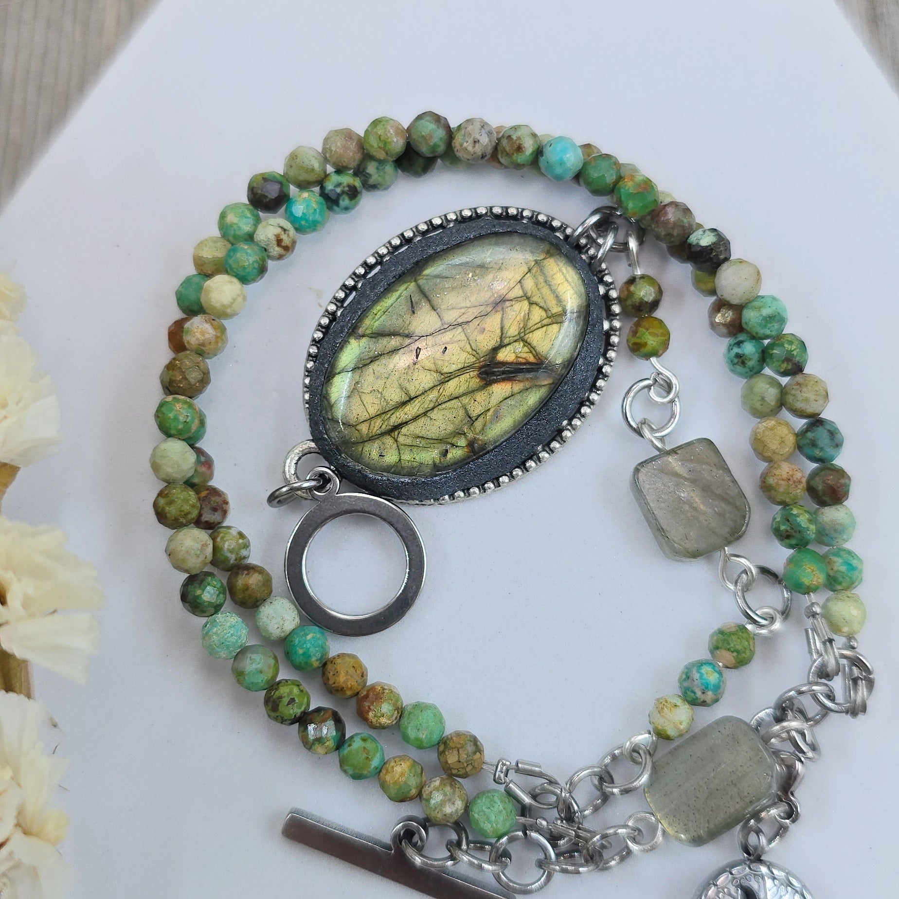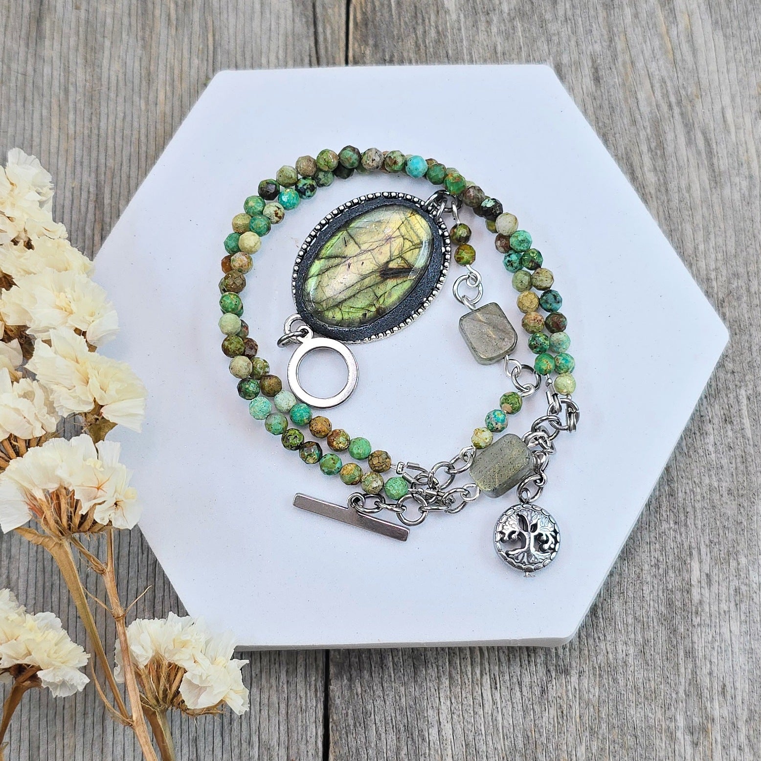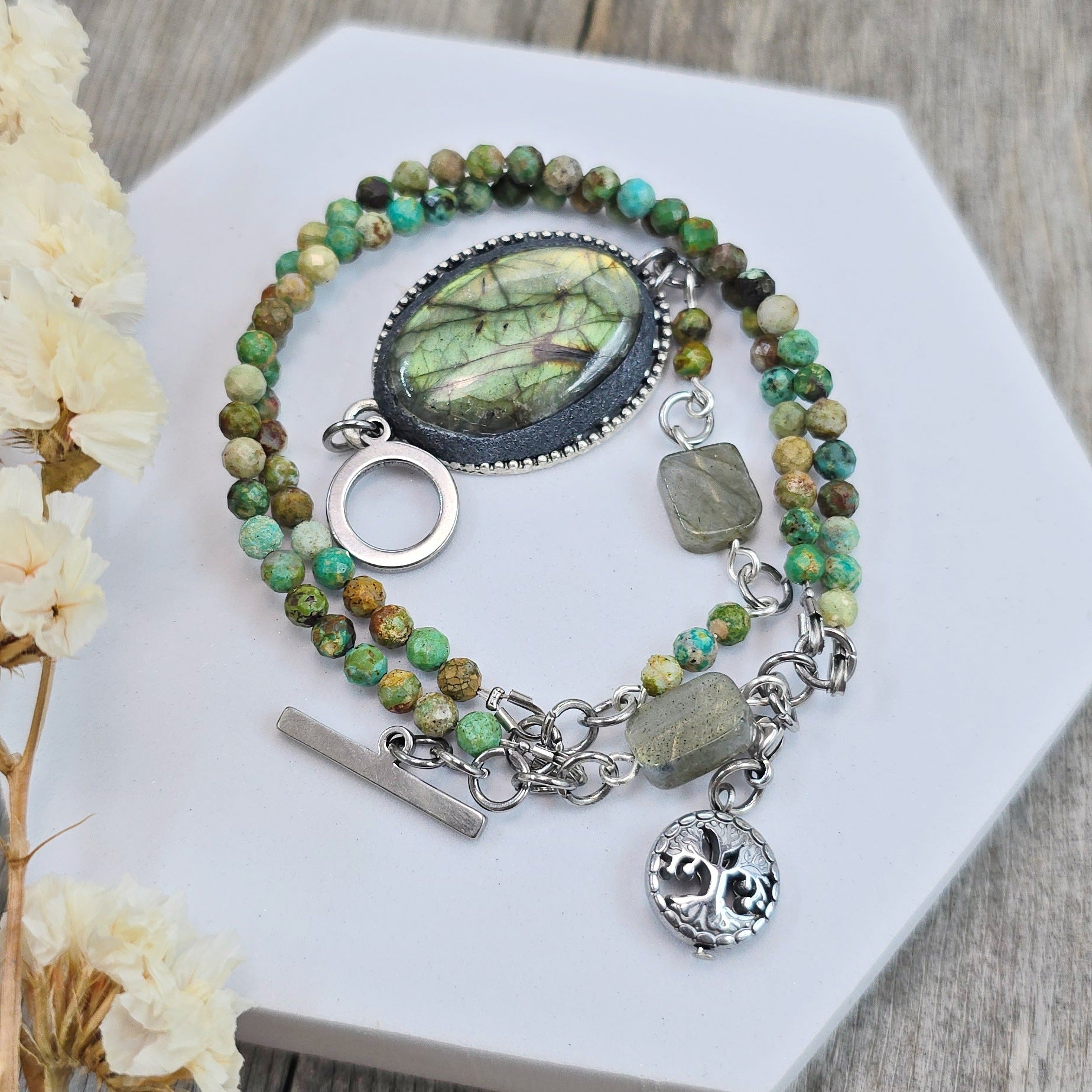 Labradoritas – paslaptingas ir galingas apsauginis akmuo, spinduliuojantis mistišką energiją. Jis padeda išsklaidyti negatyvias įtakas, pritraukia sėkmę ir suteikia vidinės stiprybės. Tai puikus palydovas einant į svarbų susitikimą ar lemtingą įvykį – jis apsaugo nuo nesklandumų ir sustiprina pasitikėjimą savimi. Be to, labradoritas puikiai tinka namų apsaugai, saugodamas erdvę nuo nepageidaujamų energijų ir nelaimių.