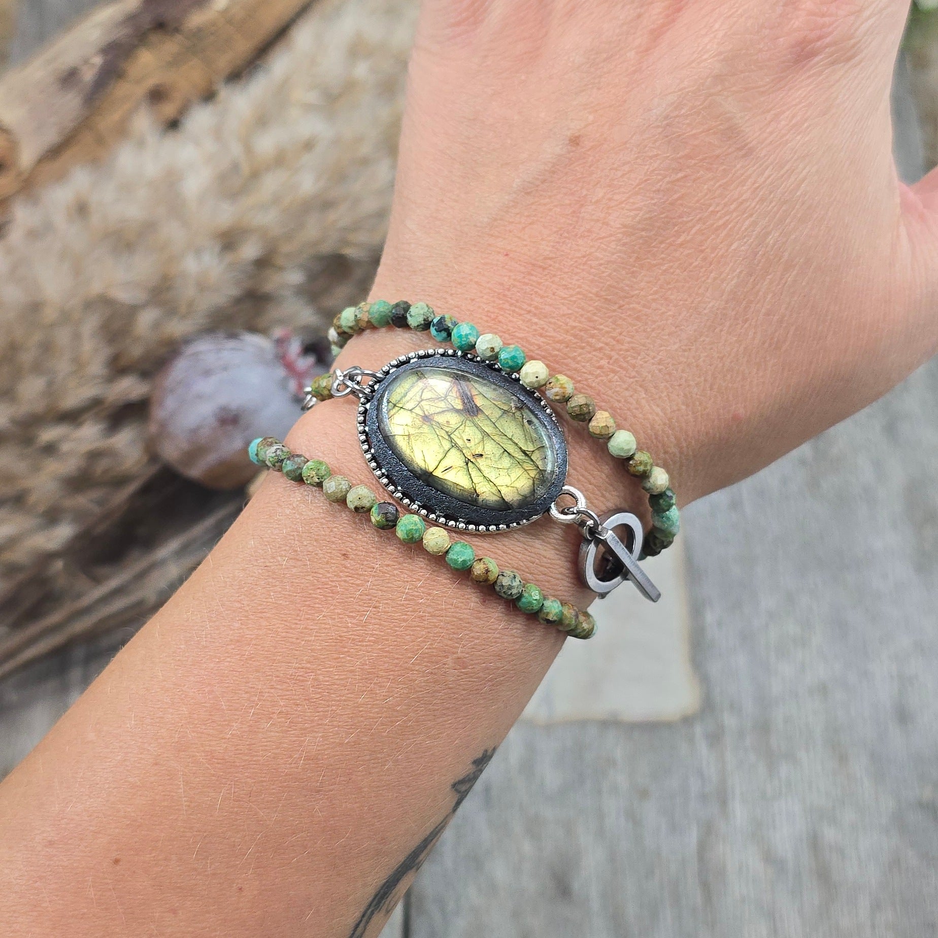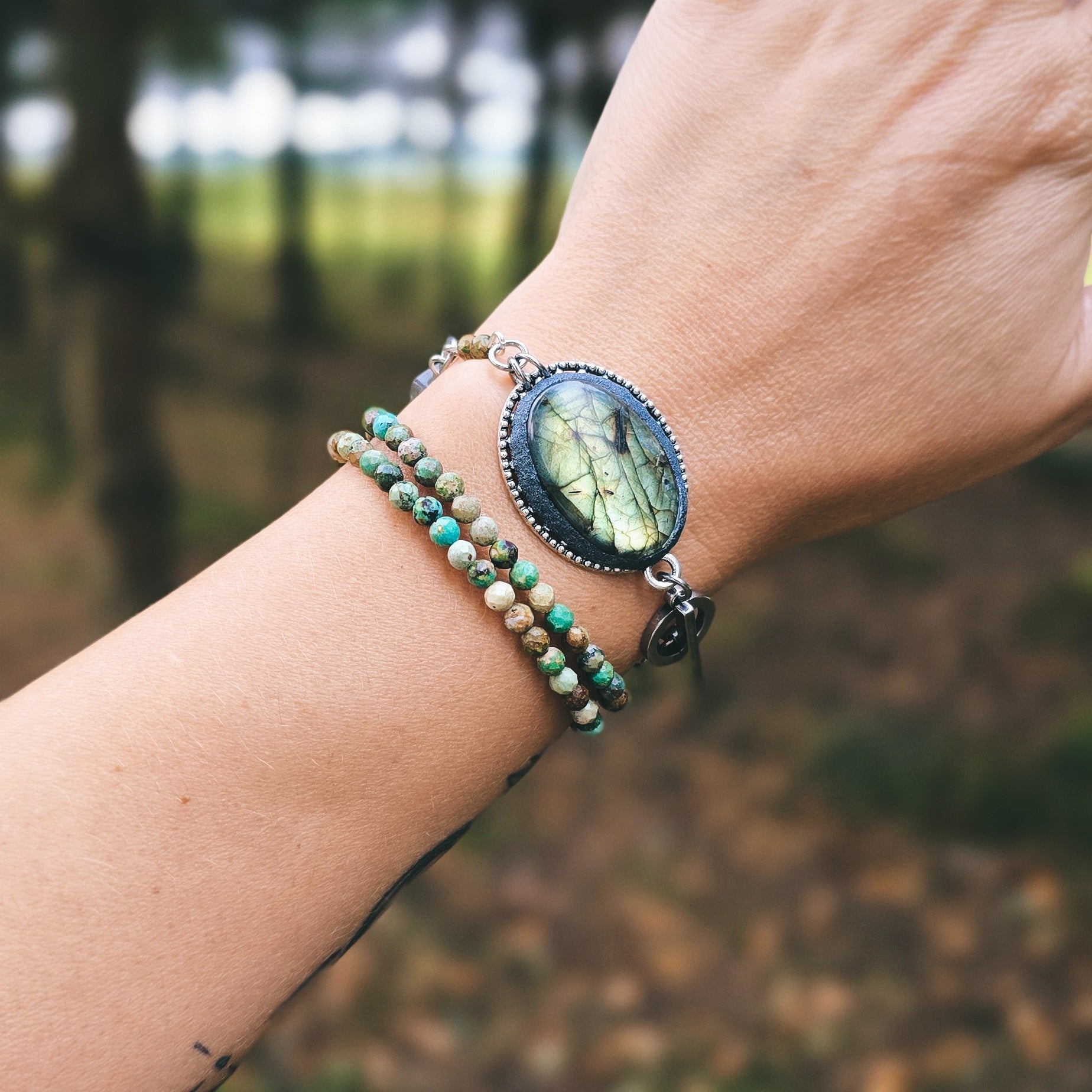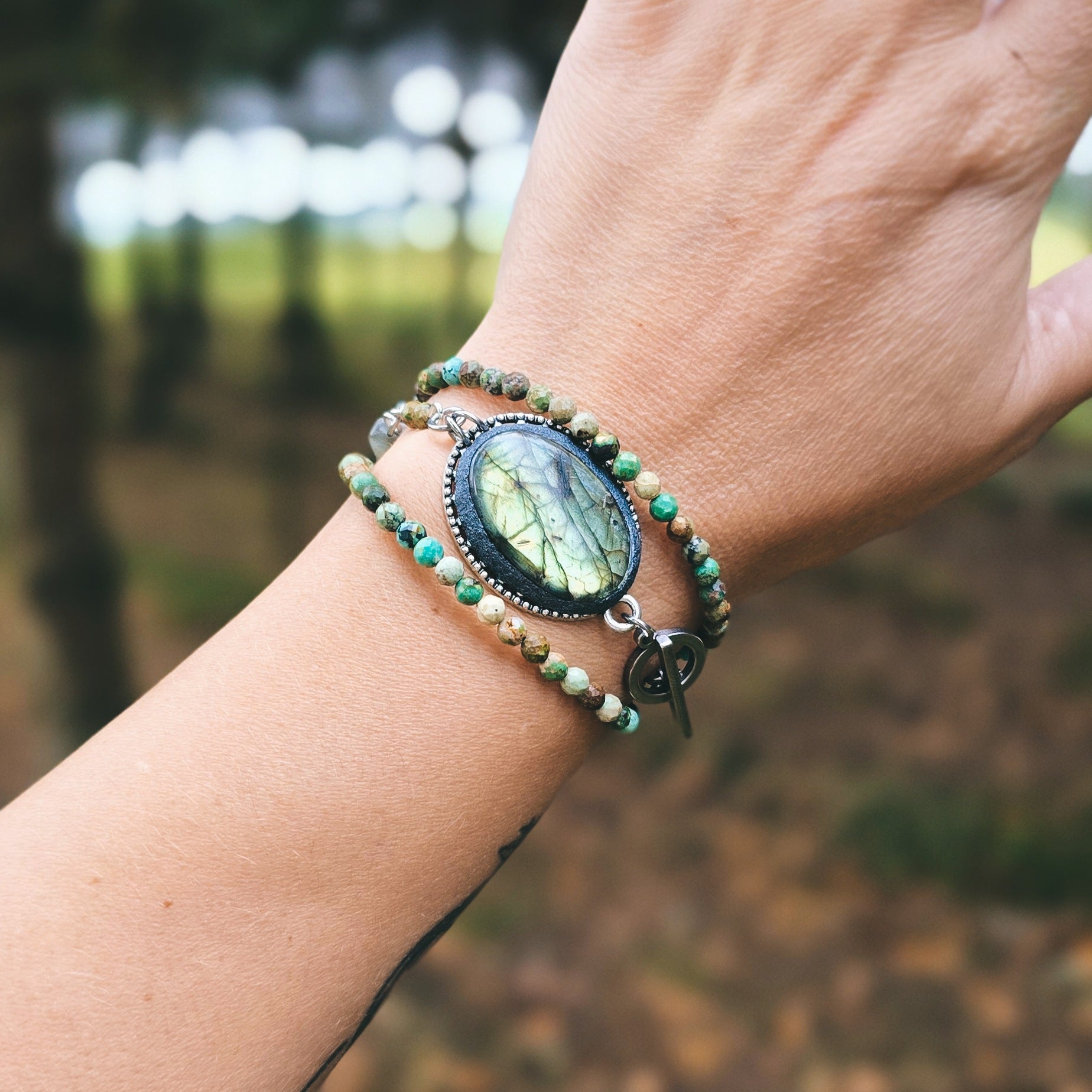 Labradoritas – paslaptingas ir galingas apsauginis akmuo, spinduliuojantis mistišką energiją. Jis padeda išsklaidyti negatyvias įtakas, pritraukia sėkmę ir suteikia vidinės stiprybės. Tai puikus palydovas einant į svarbų susitikimą ar lemtingą įvykį – jis apsaugo nuo nesklandumų ir sustiprina pasitikėjimą savimi. Be to, labradoritas puikiai tinka namų apsaugai, saugodamas erdvę nuo nepageidaujamų energijų ir nelaimių.