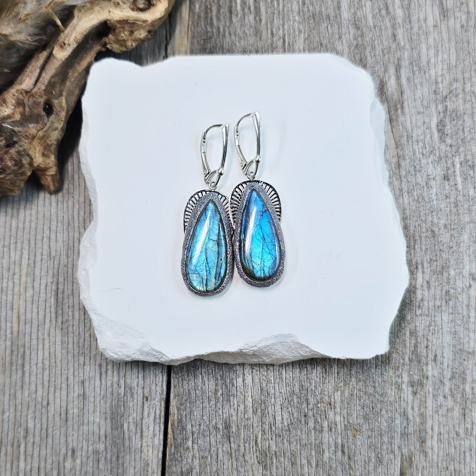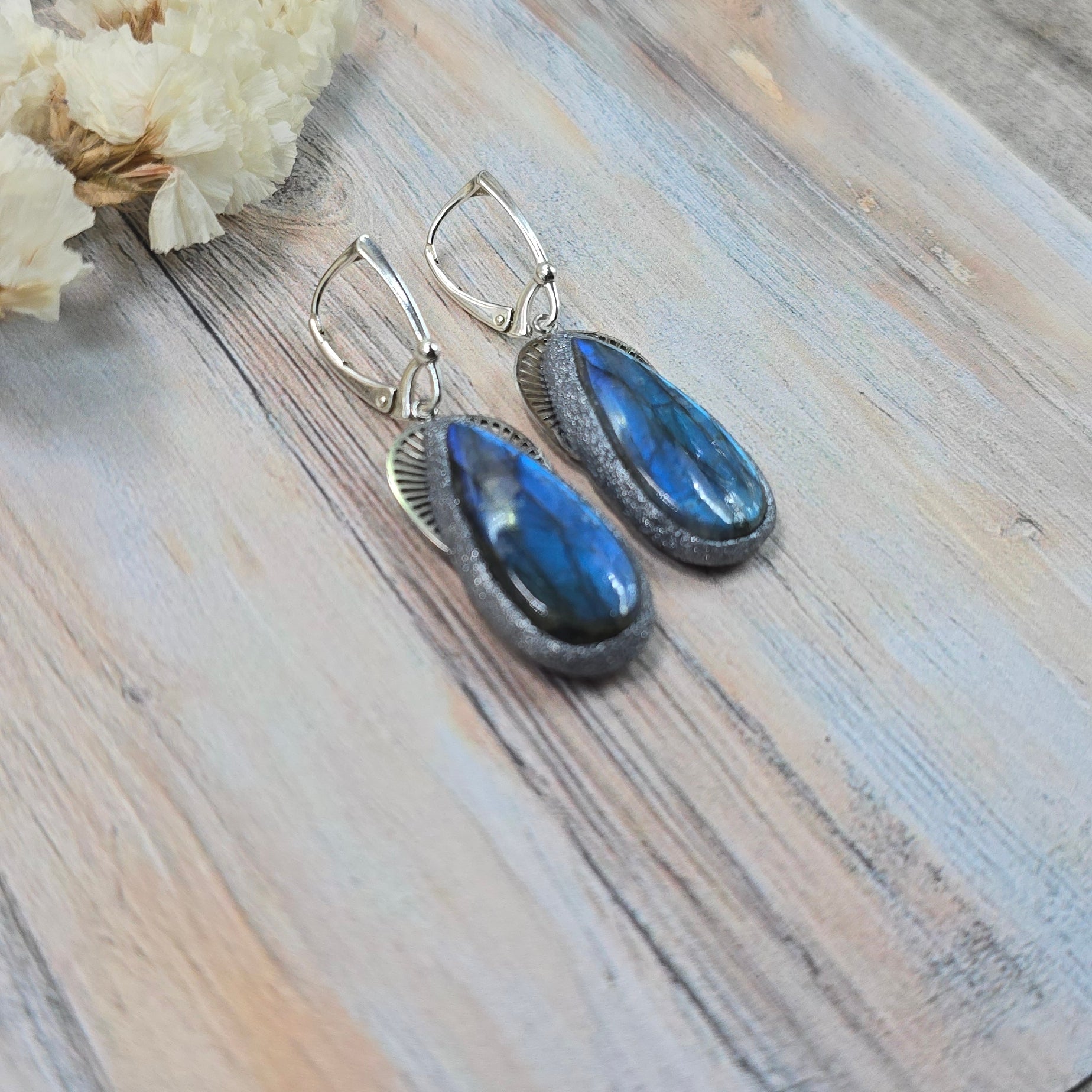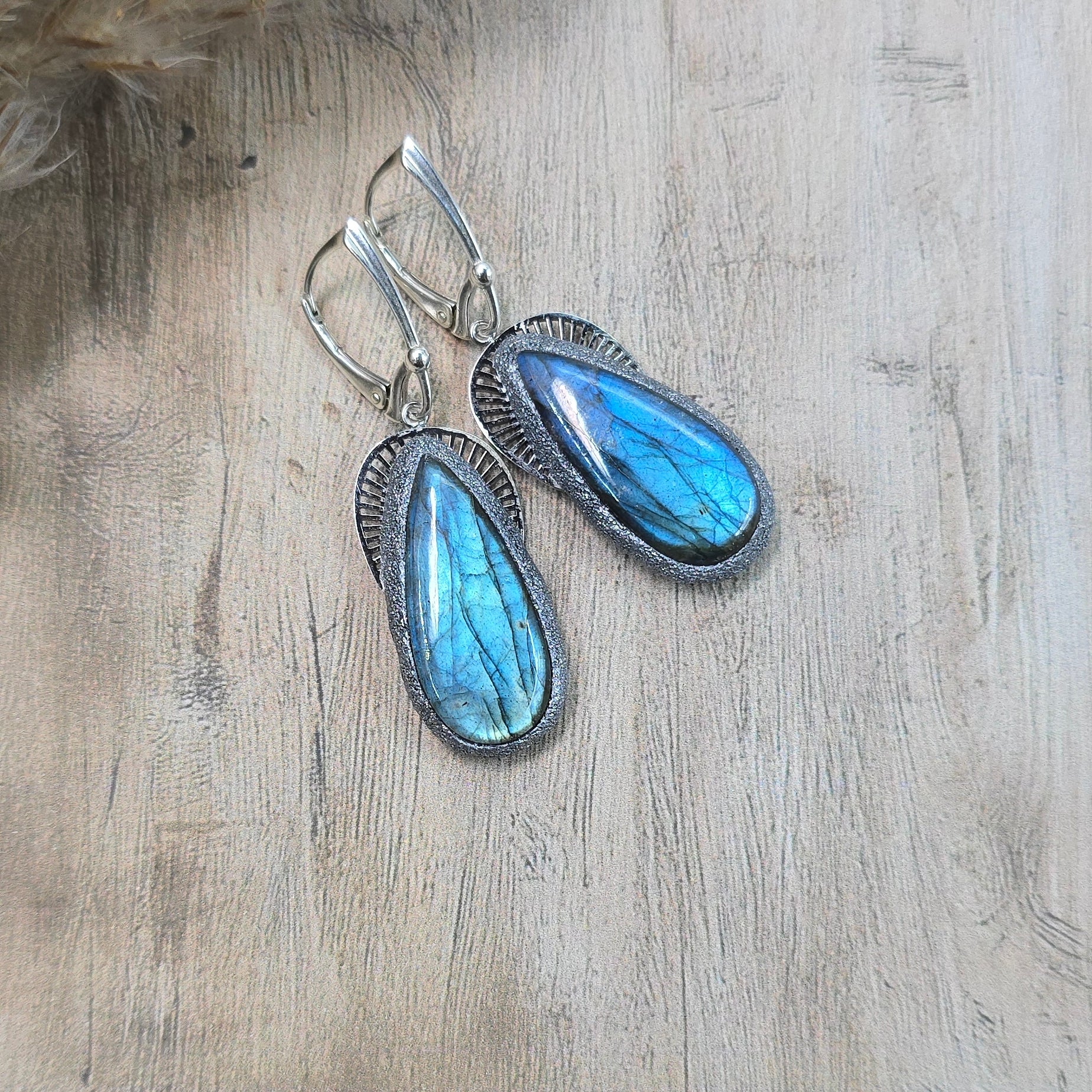 Labradorito auskarai 'Didesni lašai'
