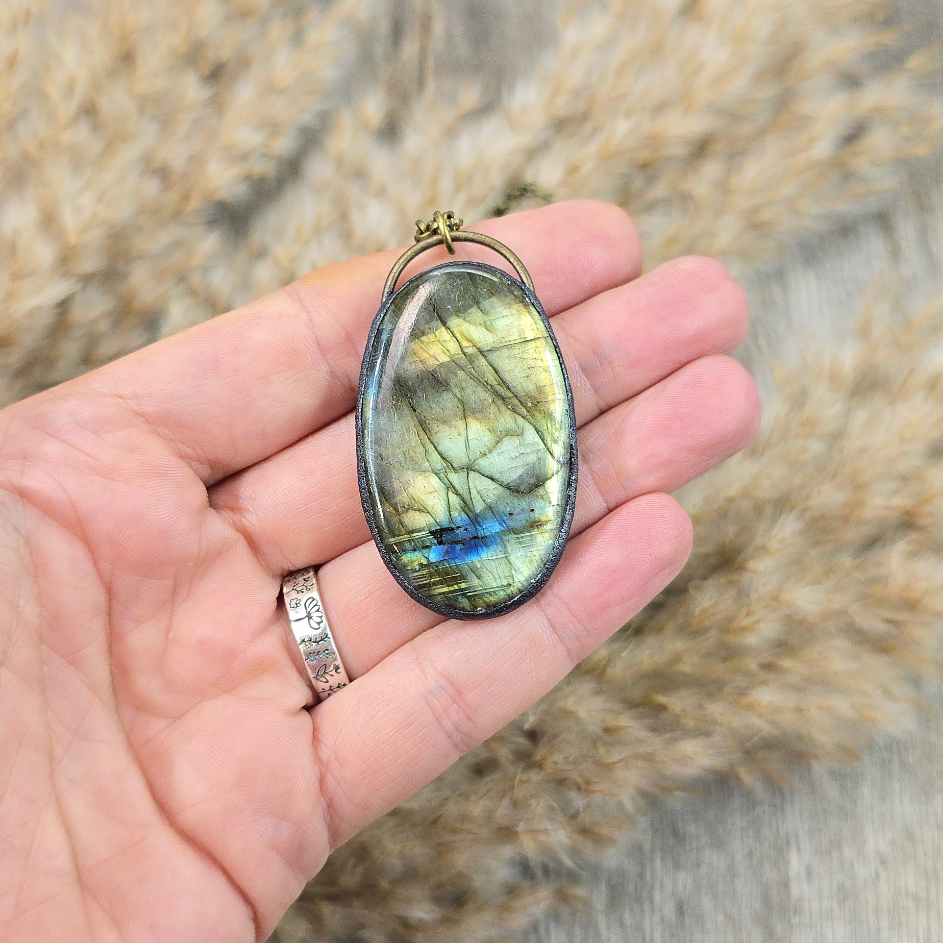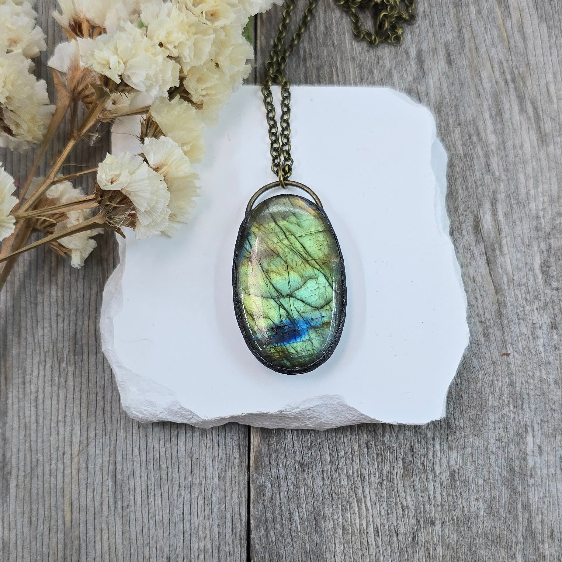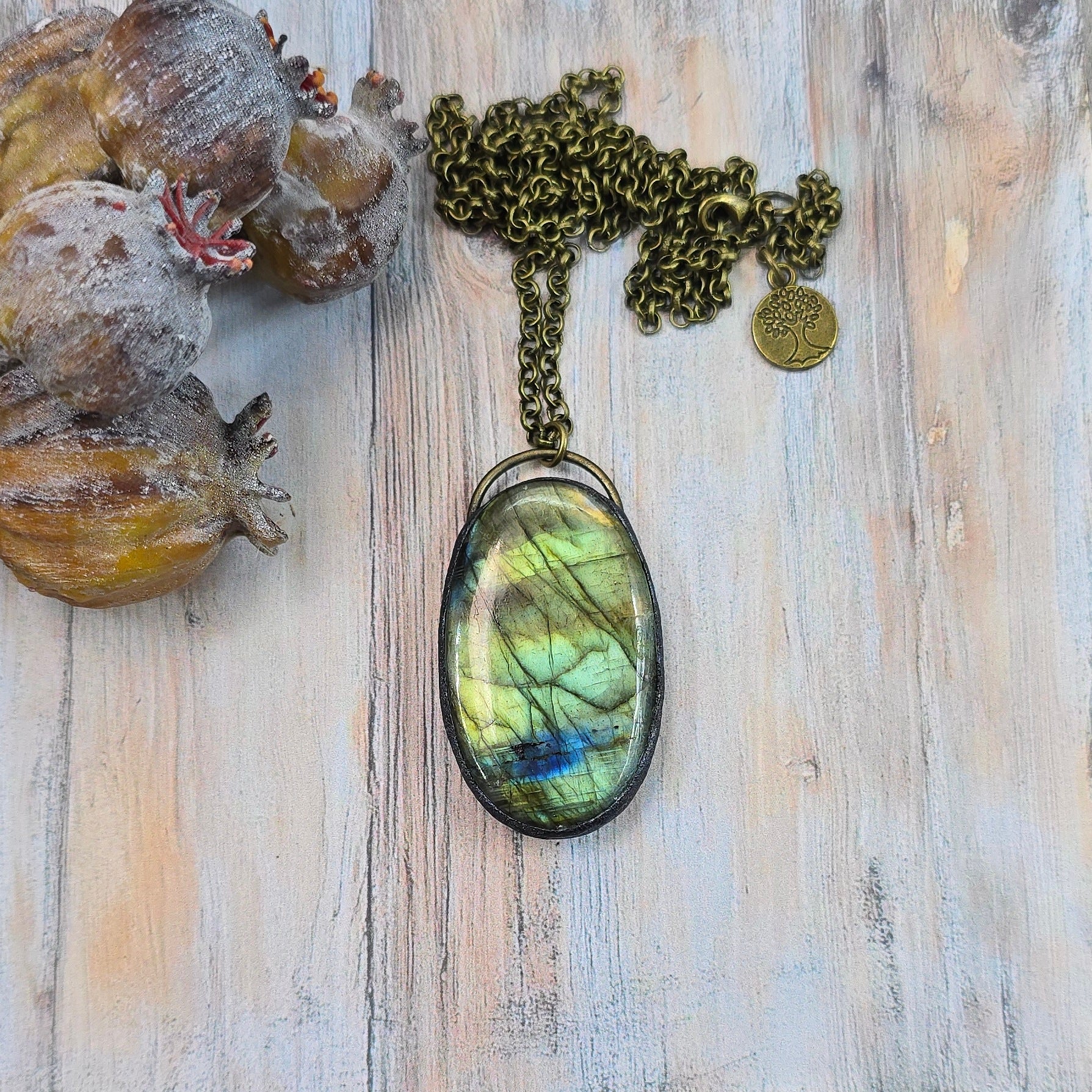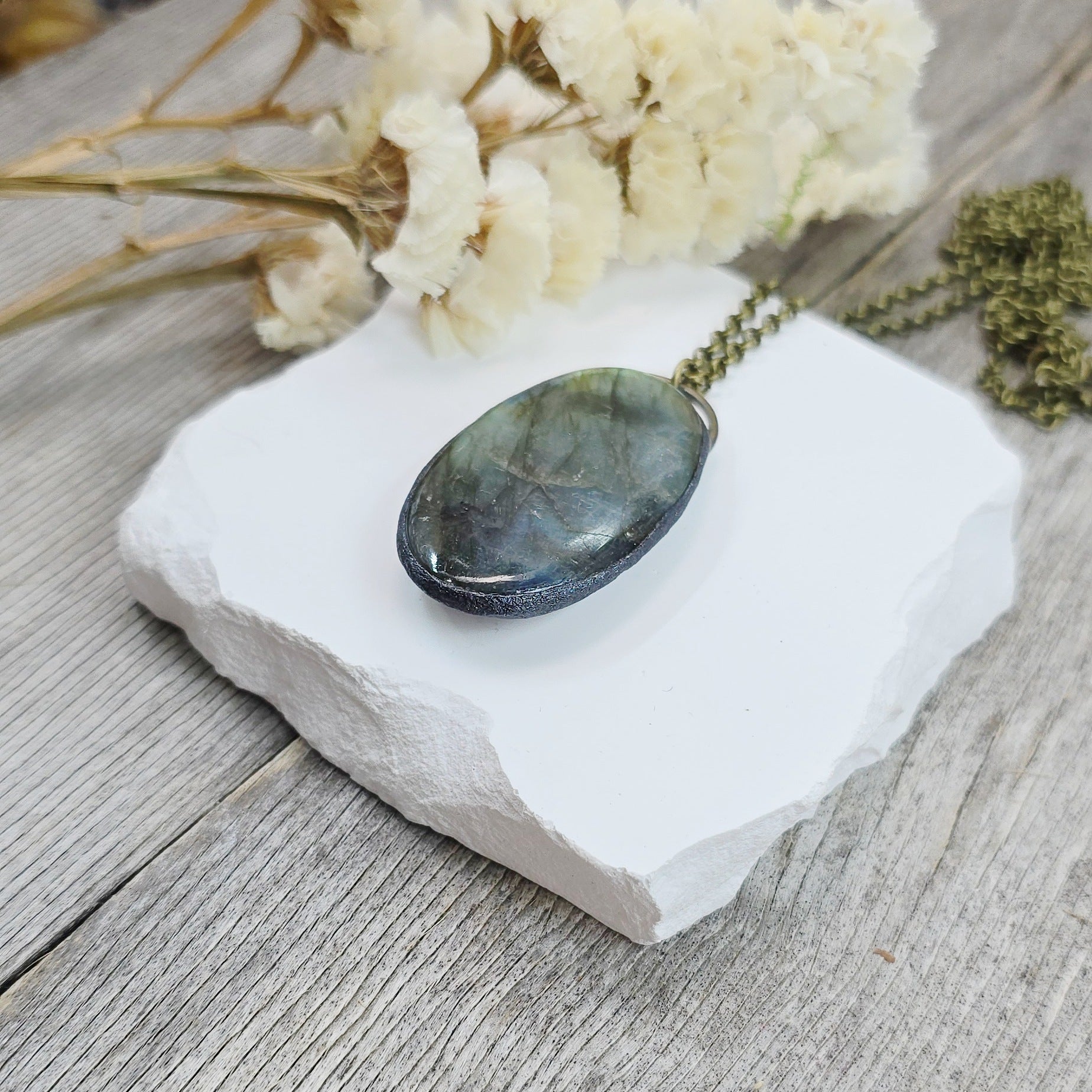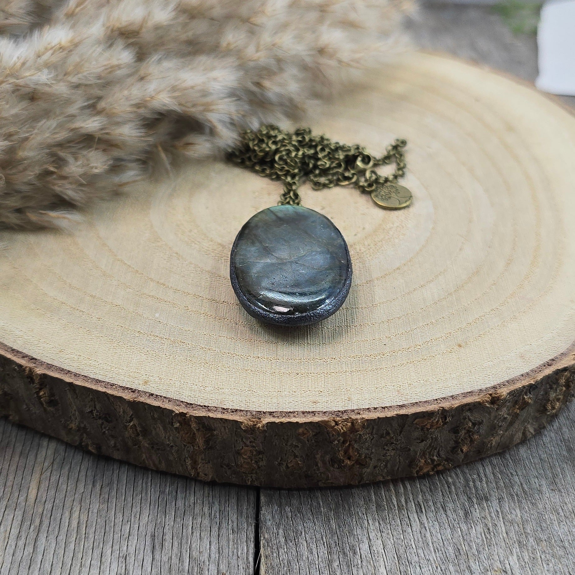 * Svarbu žinoti: labradoritas nešvyti nuolat. Jo spalvų žaismas pasirodo tam tikru kampu ir šviesoje – tai natūrali šio akmens savybė. - Labradoritas – tai paslapčių ir vidinės magijos akmuo. Jis laikomas stipriu apsauginiu talismanu, saugančiu aurą nuo neigiamos energijos ir padedančiu išlaikyti vidinę pusiausvyrą. Sakoma, kad šis akmuo pažadina intuiciją, sustiprina ryšį su pasąmone ir atveria duris į nematomą pasaulį. Jo švytėjimas – tarsi užuomina į tai, kas slypi giliau, už išorės ribų. Labradoritas skatina tikėti stebuklais, drąsina svajoti ir į pasaulį žvelgti širdimi. Ne veltui jį vadina šamanų ir ieškančiųjų akmeniu – jis primena, kad magija egzistuoja, jei tik pasiryžtame ją pastebėti.