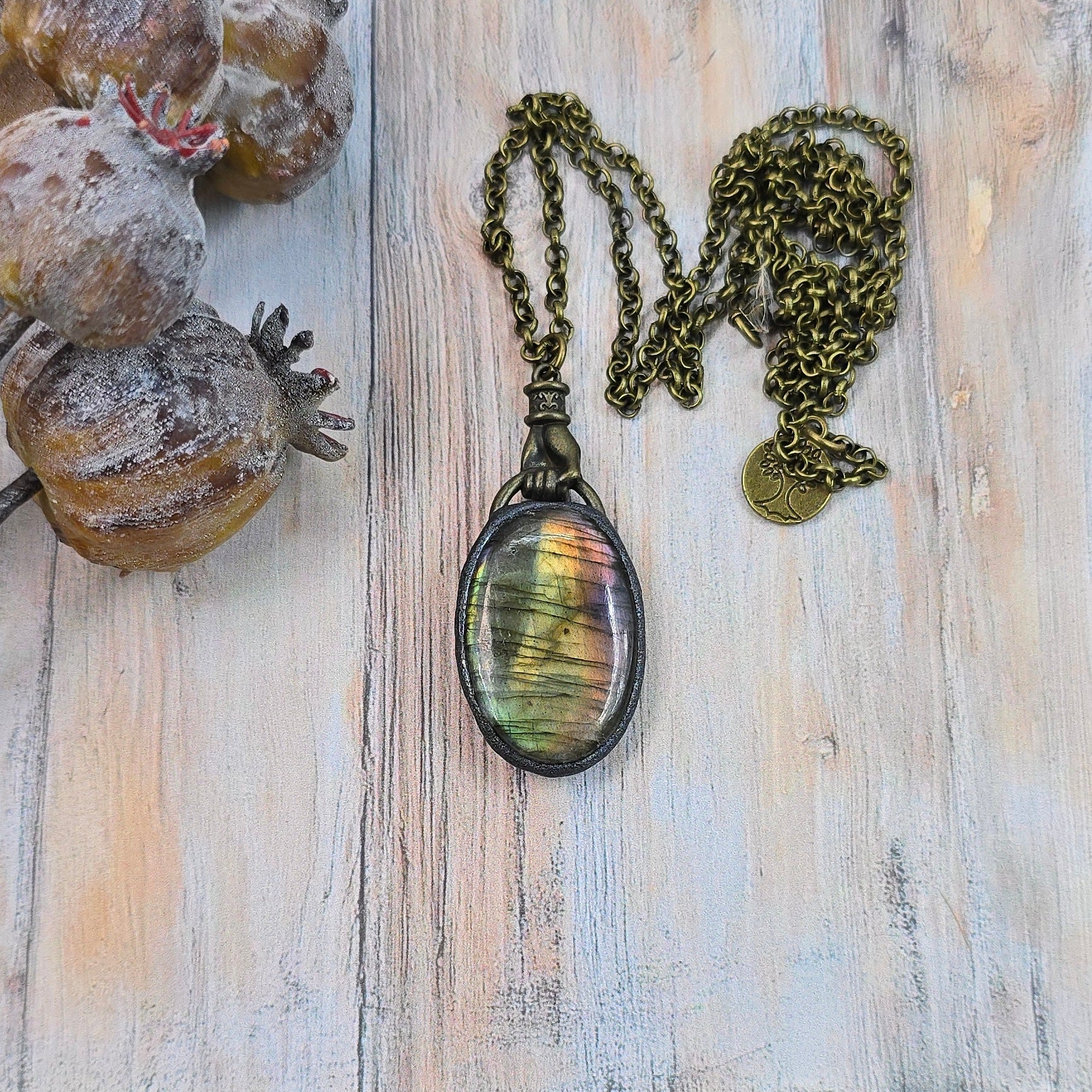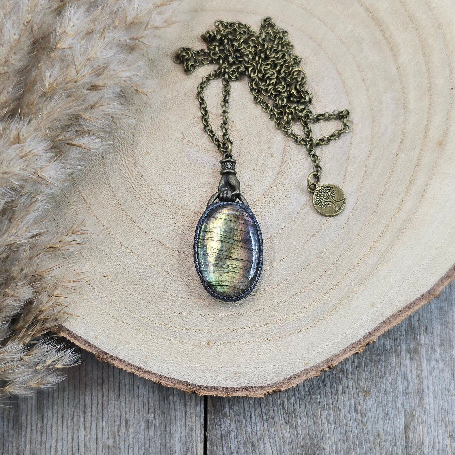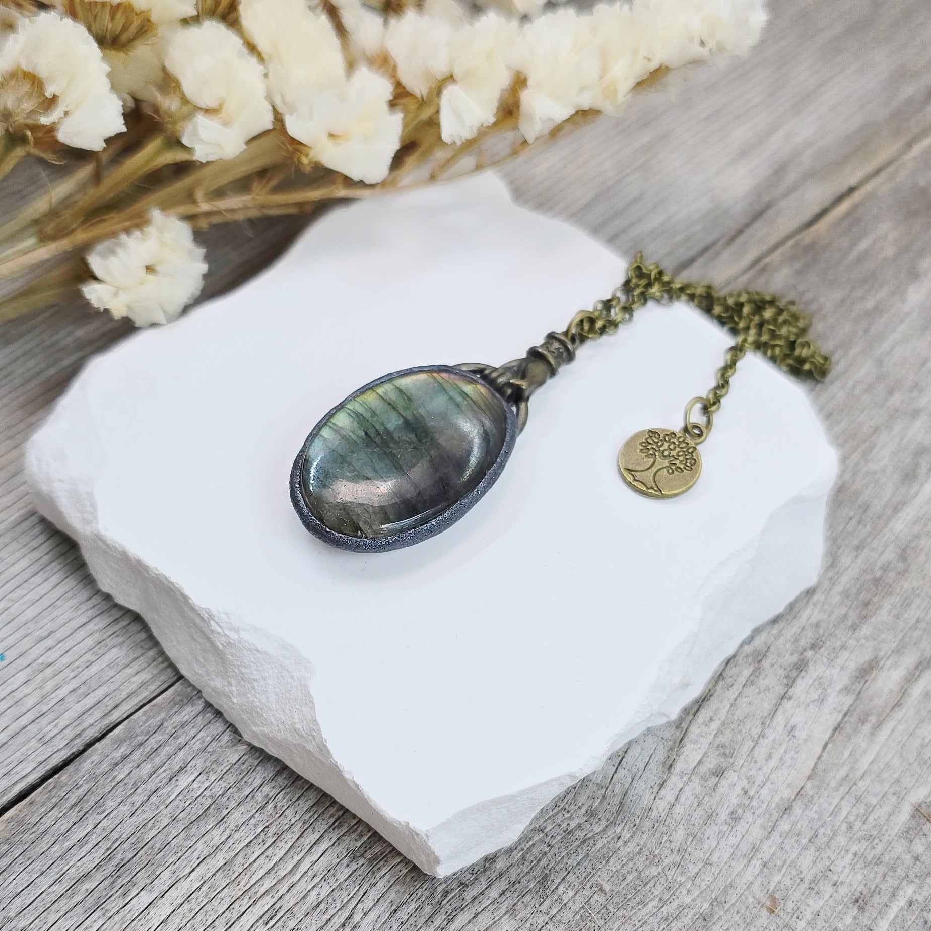 * Svarbu žinoti: labradoritas nešvyti nuolat. Jo spalvų žaismas pasirodo tam tikru kampu ir šviesoje – tai natūrali šio akmens savybė. - Labradoritas – tai paslapčių ir vidinės magijos akmuo. Jis laikomas stipriu apsauginiu talismanu, saugančiu aurą nuo neigiamos energijos ir padedančiu išlaikyti vidinę pusiausvyrą. Sakoma, kad šis akmuo pažadina intuiciją, sustiprina ryšį su pasąmone ir atveria duris į nematomą pasaulį. Jo švytėjimas – tarsi užuomina į tai, kas slypi giliau, už išorės ribų. Labradoritas skatina tikėti stebuklais, drąsina svajoti ir į pasaulį žvelgti širdimi. Ne veltui jį vadina šamanų ir ieškančiųjų akmeniu – jis primena, kad magija egzistuoja, jei tik pasiryžtame ją pastebėti.