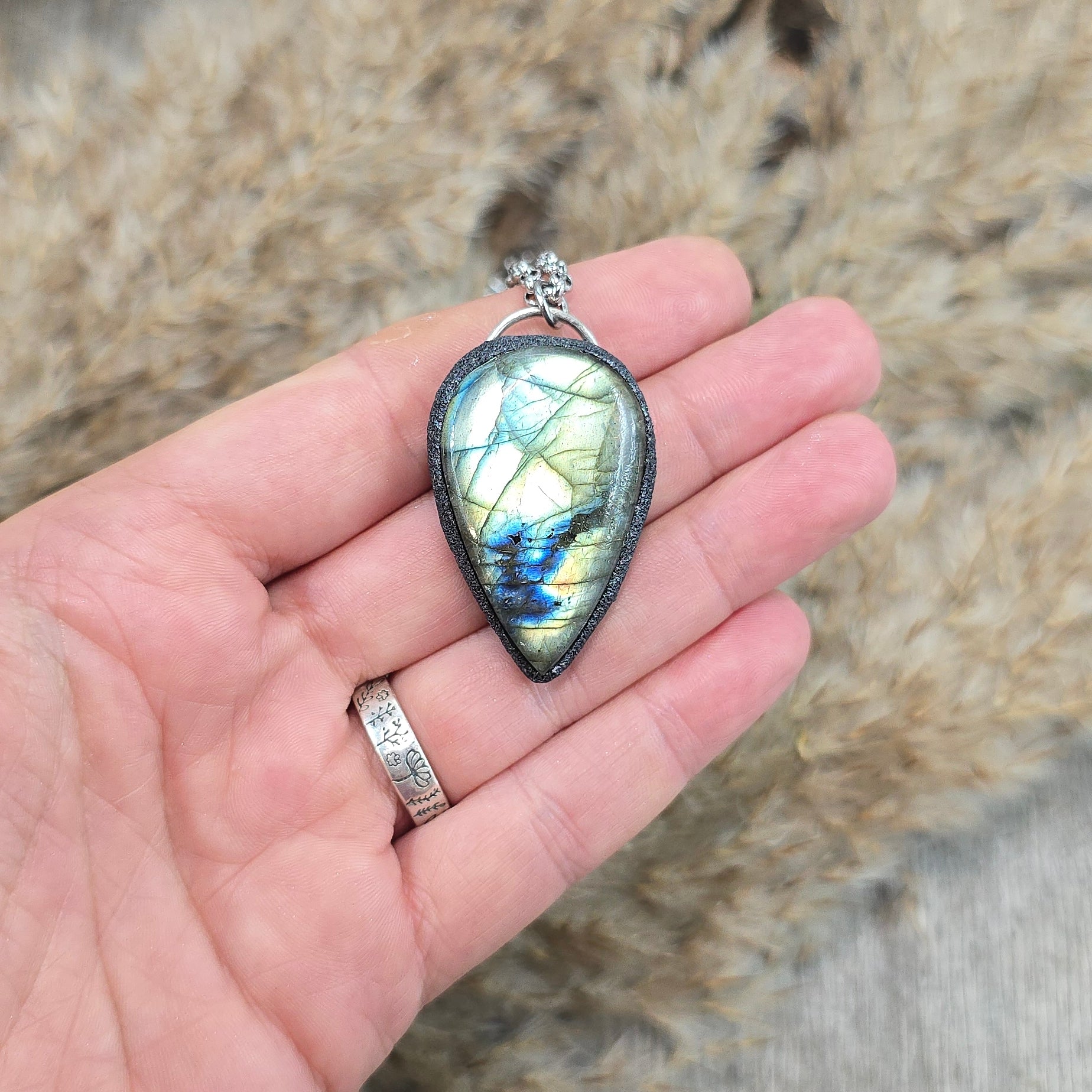 Svarbu žinoti: labradoritas nešvyti nuolat. Jo spalvų žaismas pasirodo tam tikru kampu ir šviesoje – tai natūrali šio akmens savybė.