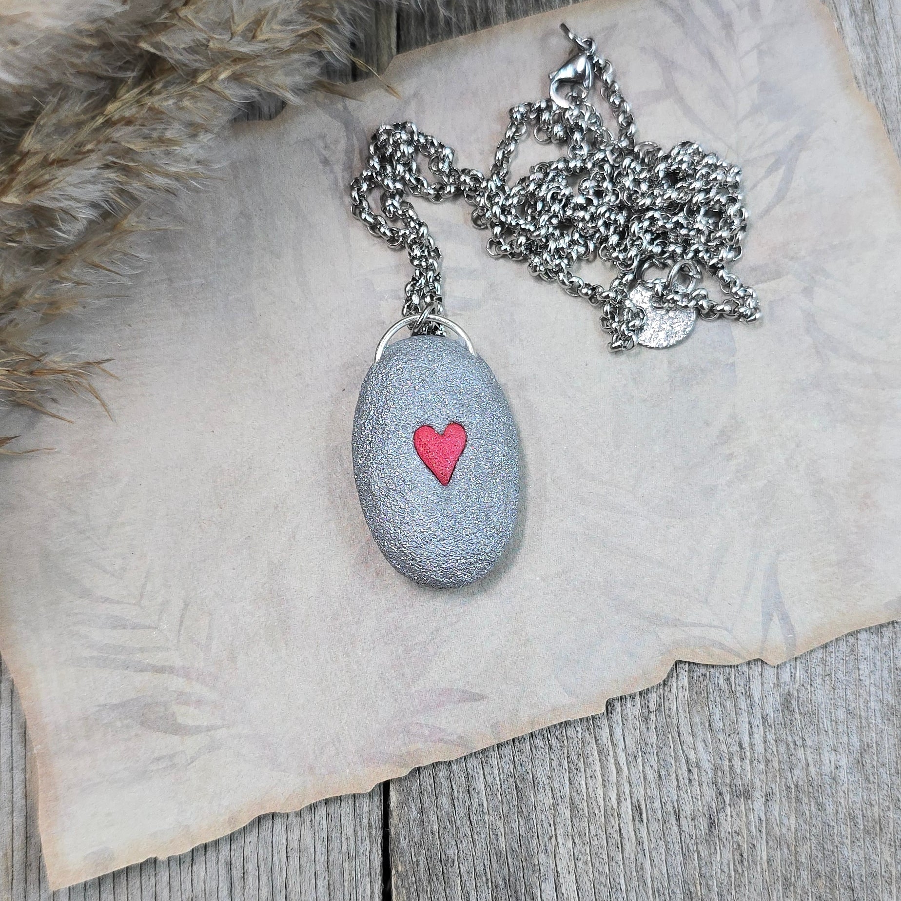 ⦁ Akmenukas 'įrėmintas' polimerinio molio pagalba. Pilka dalis - tai polimerinis molis - patvari kieta medžiaga. Jo dėka akmenukas pritvirtintas prie metalinės detalės.
