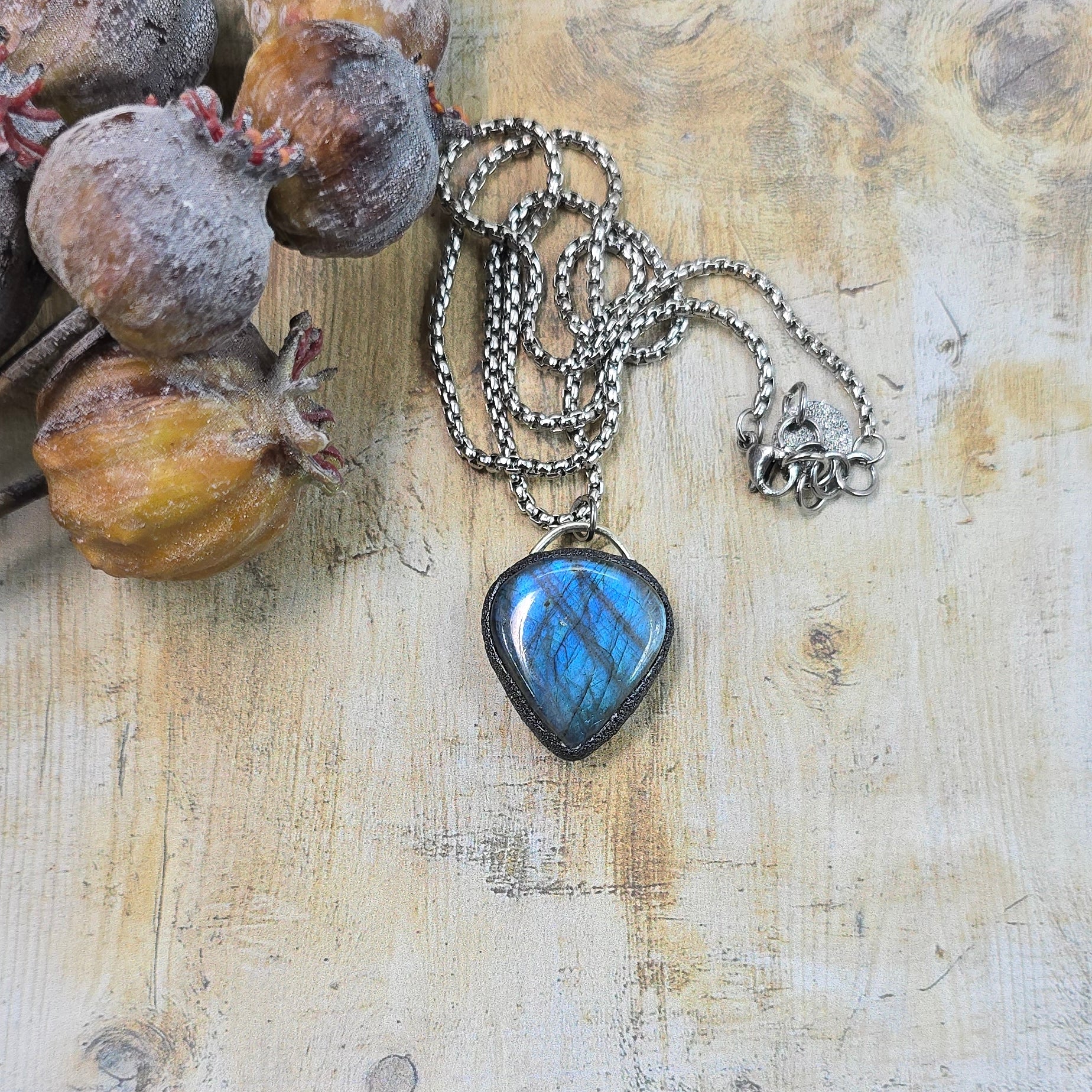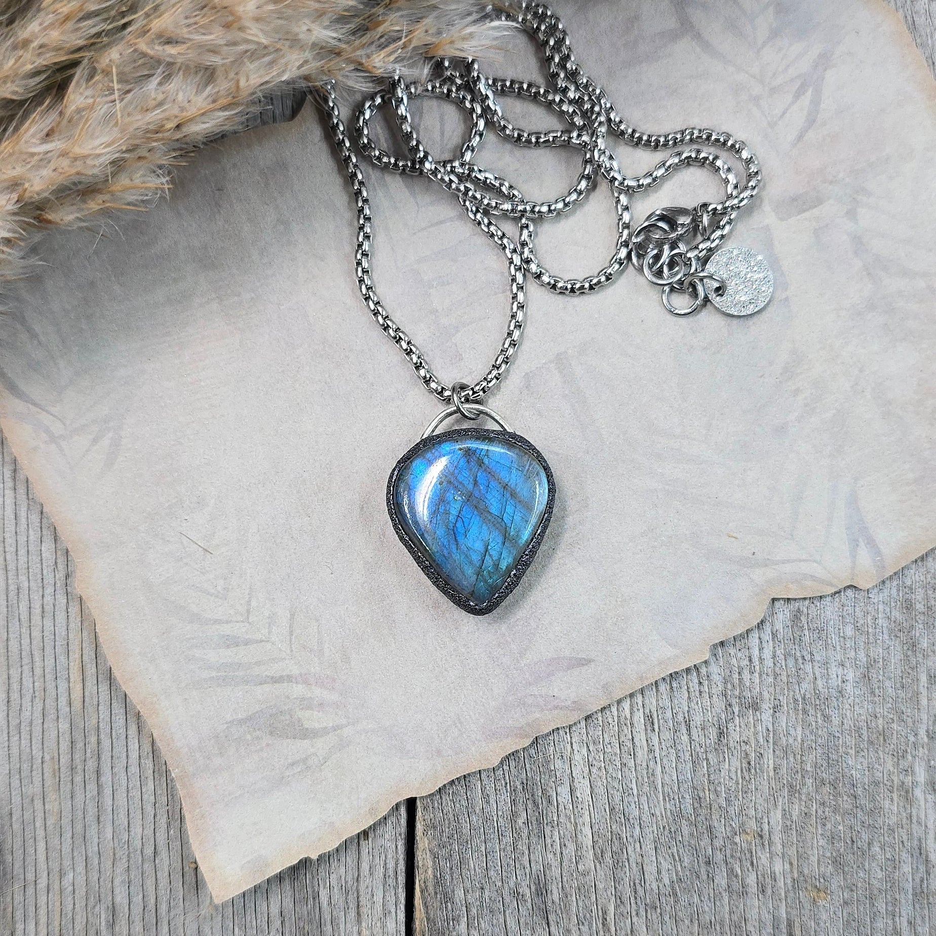 Labradorito pakabukas ant trumpesnės grandinėlės
