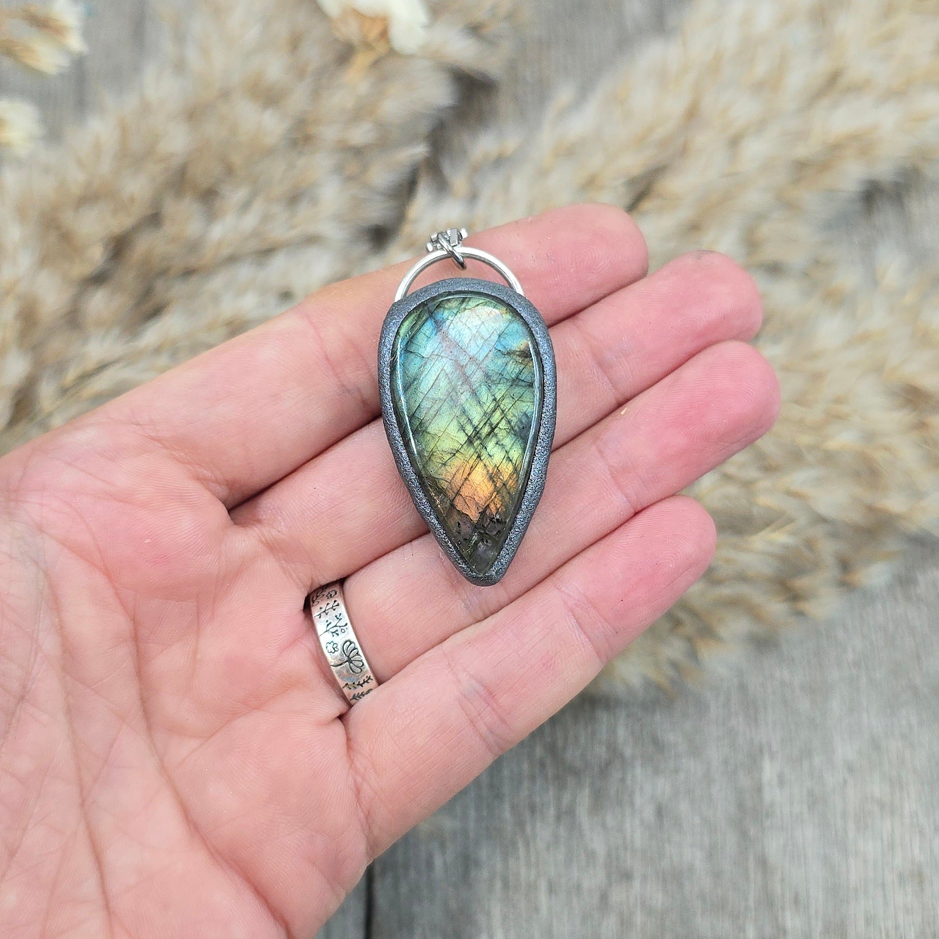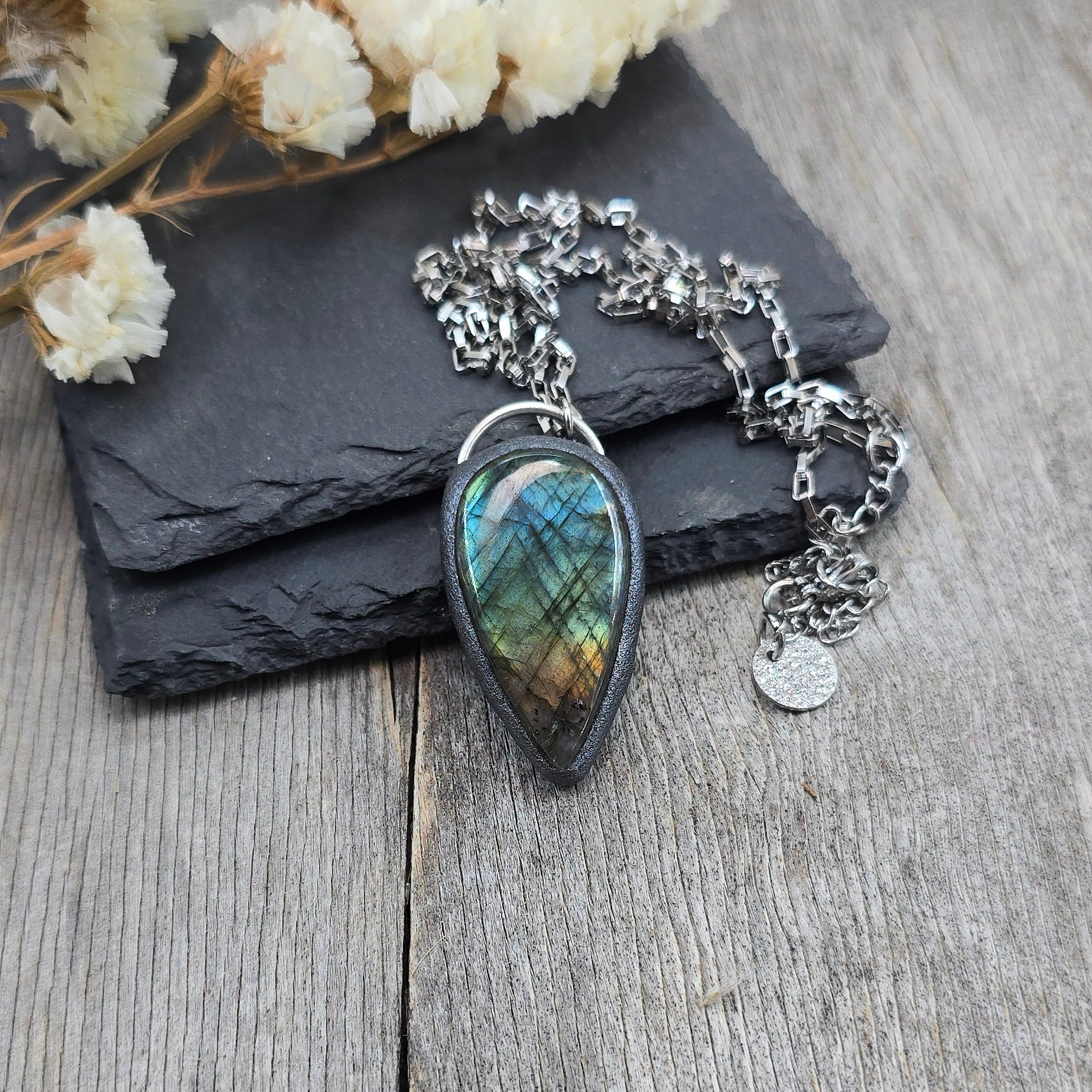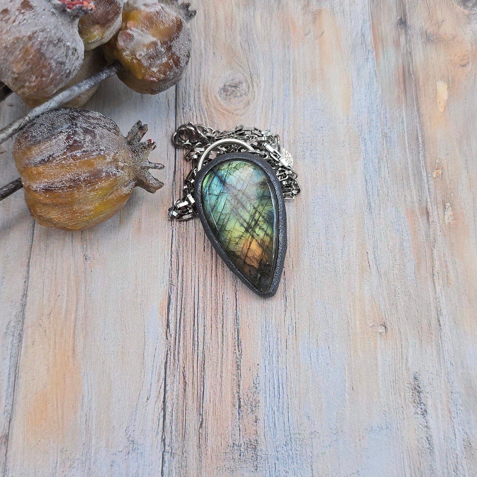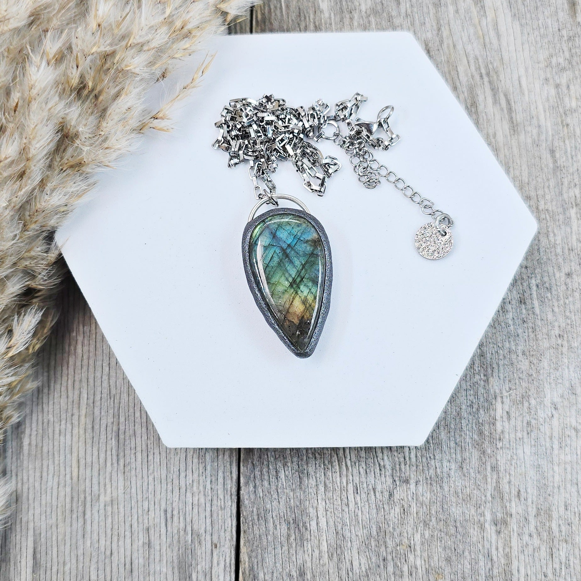 * Svarbu žinoti: labradoritas nešvyti nuolat. Jo spalvų žaismas pasirodo tam tikru kampu ir šviesoje – tai natūrali šio akmens savybė. - Labradoritas – tai paslapčių ir vidinės magijos akmuo. Jis laikomas stipriu apsauginiu talismanu, saugančiu aurą nuo neigiamos energijos ir padedančiu išlaikyti vidinę pusiausvyrą. Sakoma, kad šis akmuo pažadina intuiciją, sustiprina ryšį su pasąmone ir atveria duris į nematomą pasaulį. Jo švytėjimas – tarsi užuomina į tai, kas slypi giliau, už išorės ribų. Labradoritas skatina tikėti stebuklais, drąsina svajoti ir į pasaulį žvelgti širdimi. Ne veltui jį vadina šamanų ir ieškančiųjų akmeniu – jis primena, kad magija egzistuoja, jei tik pasiryžtame ją pastebėti.