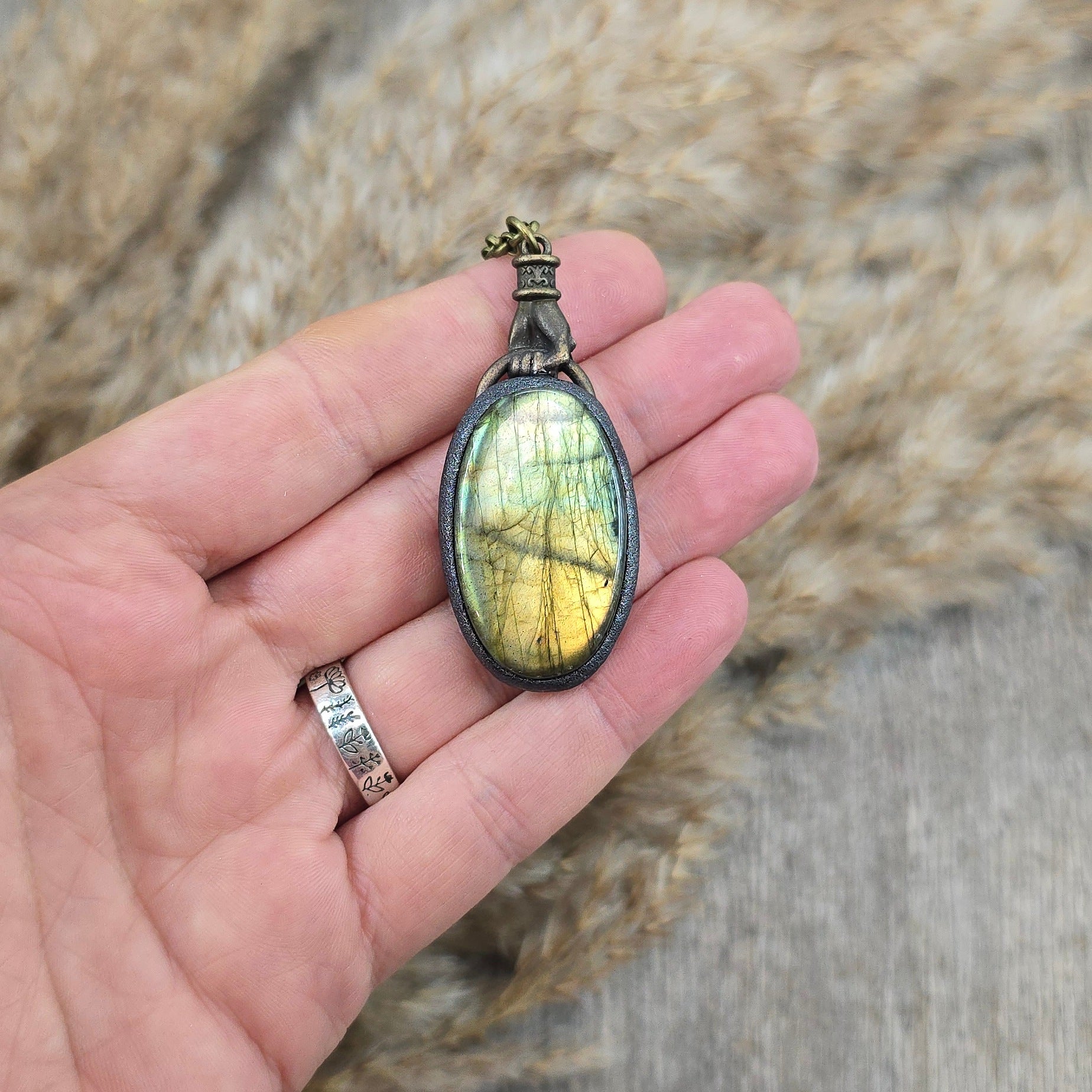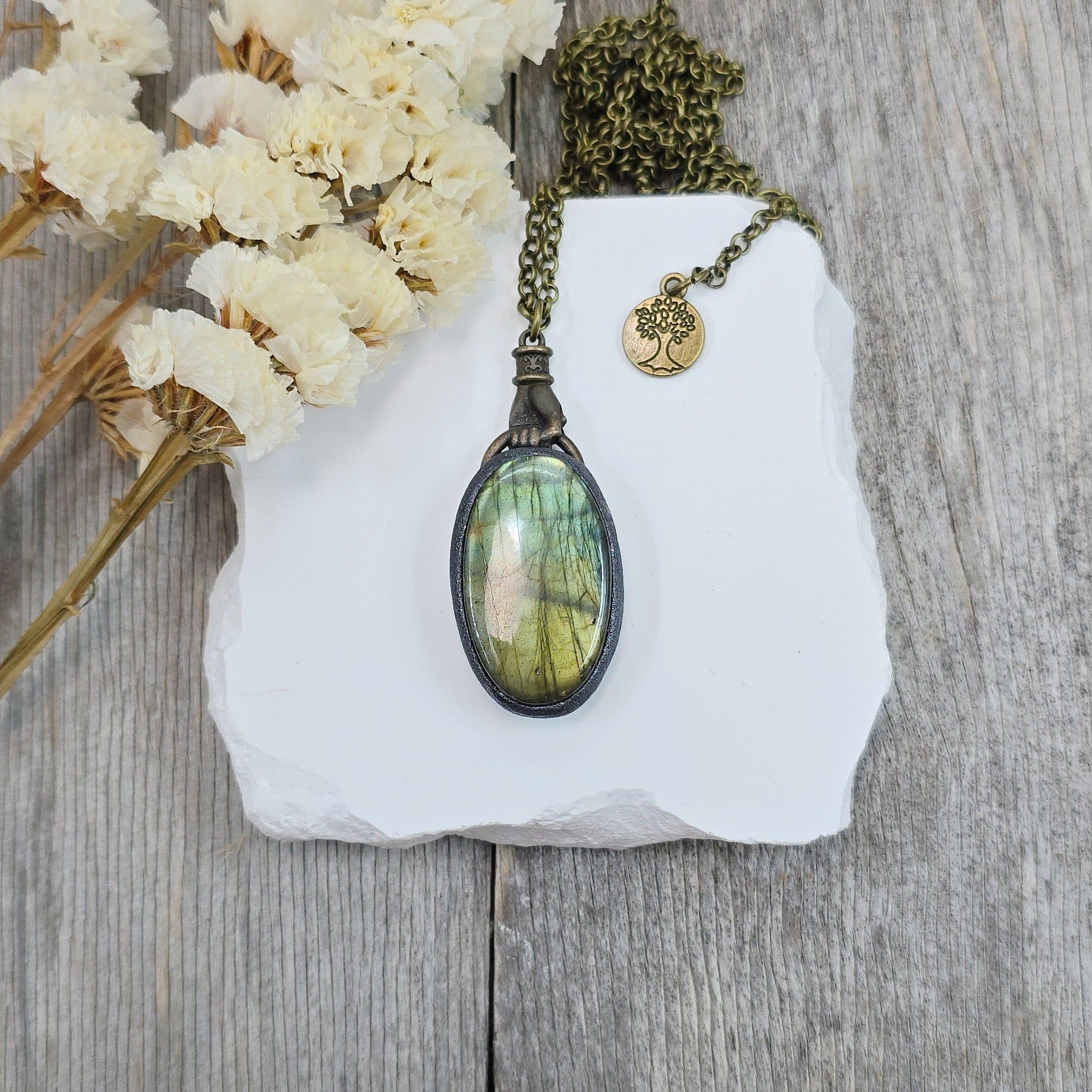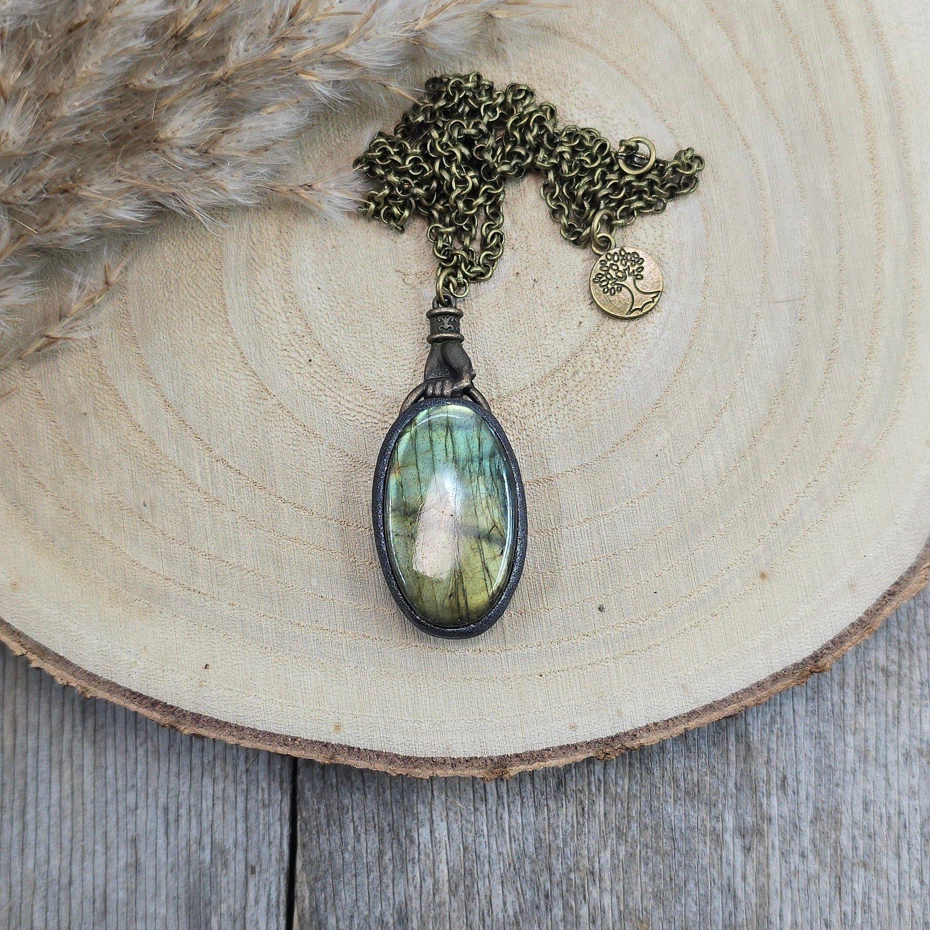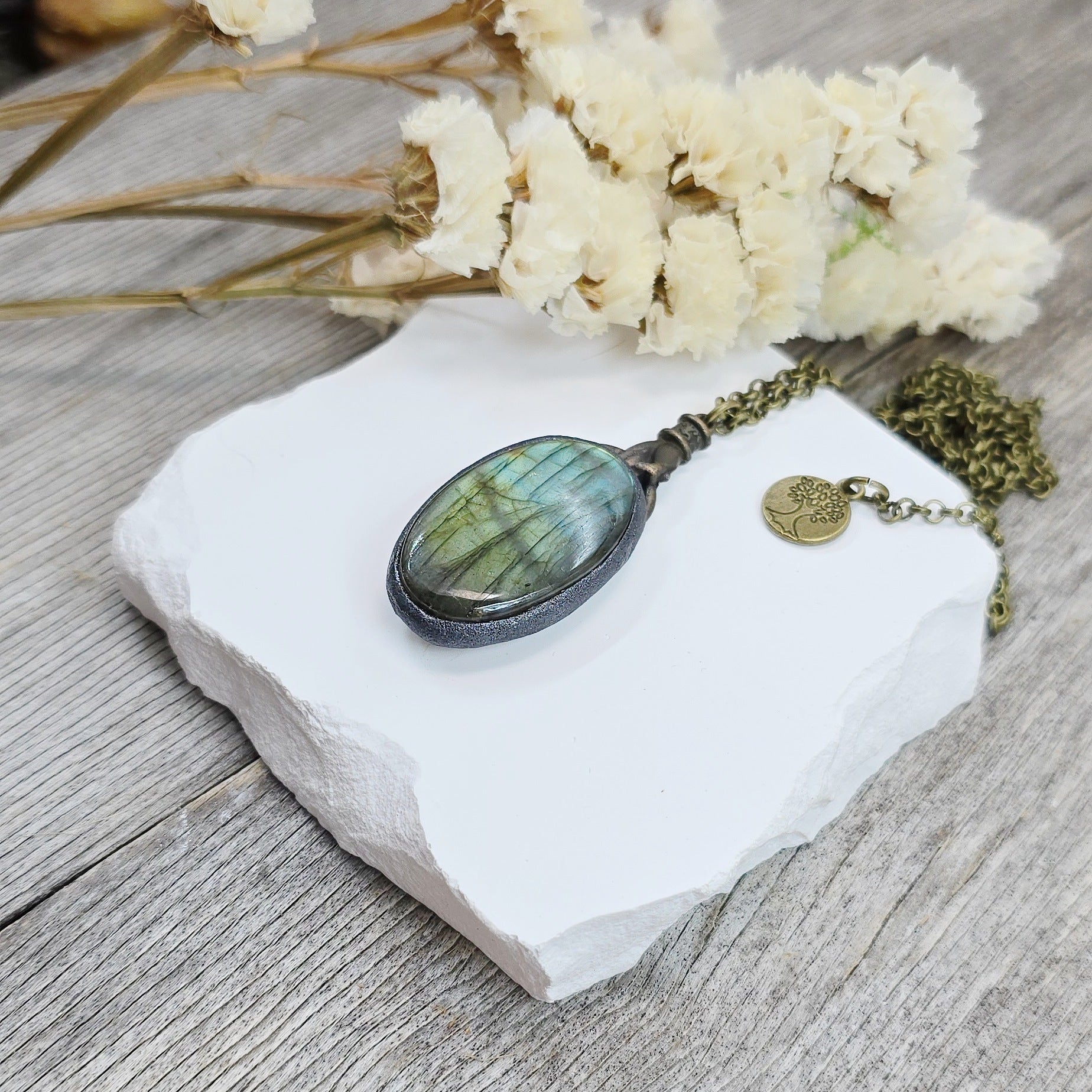 * Svarbu žinoti: labradoritas nešvyti nuolat. Jo spalvų žaismas pasirodo tam tikru kampu ir šviesoje – tai natūrali šio akmens savybė. - Labradoritas – tai paslapčių ir vidinės magijos akmuo. Jis laikomas stipriu apsauginiu talismanu, saugančiu aurą nuo neigiamos energijos ir padedančiu išlaikyti vidinę pusiausvyrą. Sakoma, kad šis akmuo pažadina intuiciją, sustiprina ryšį su pasąmone ir atveria duris į nematomą pasaulį. Jo švytėjimas – tarsi užuomina į tai, kas slypi giliau, už išorės ribų. Labradoritas skatina tikėti stebuklais, drąsina svajoti ir į pasaulį žvelgti širdimi. Ne veltui jį vadina šamanų ir ieškančiųjų akmeniu – jis primena, kad magija egzistuoja, jei tik pasiryžtame ją pastebėti.