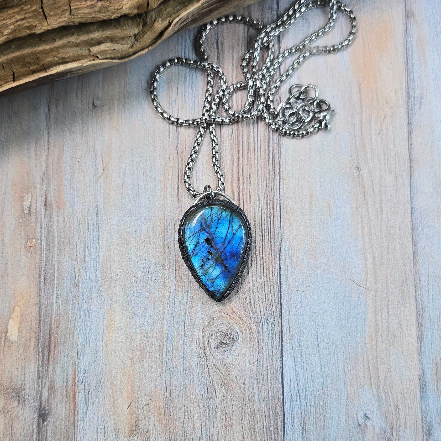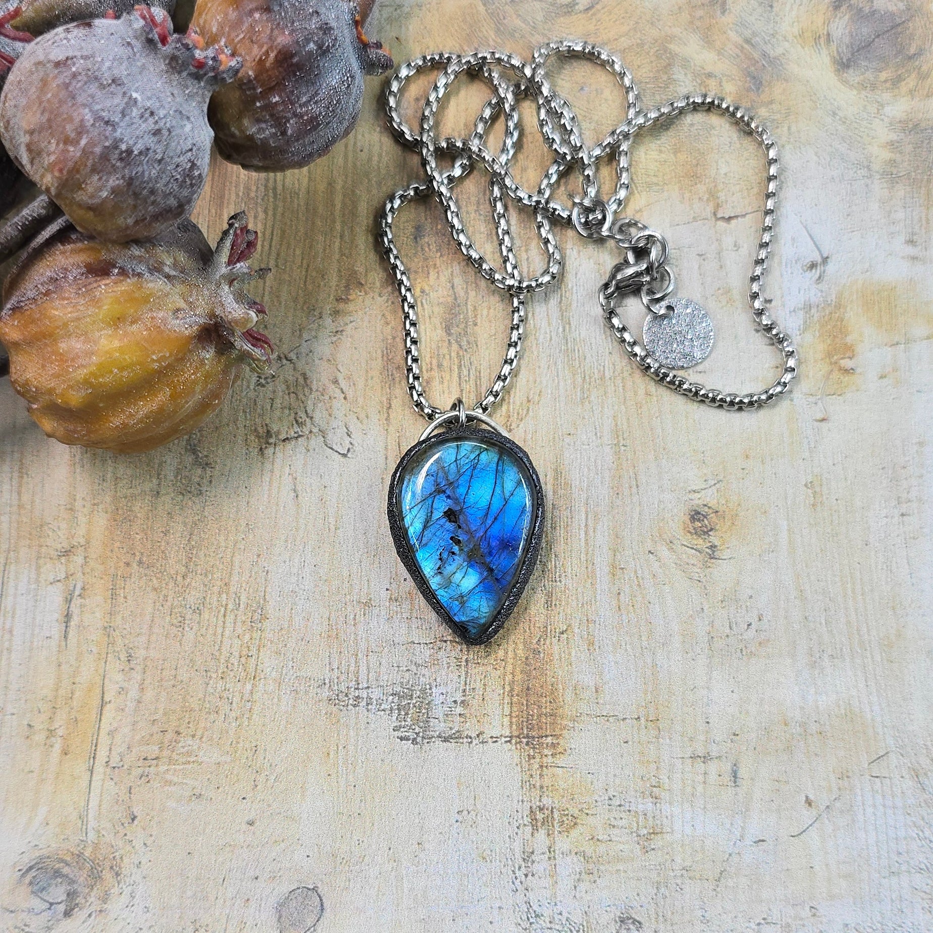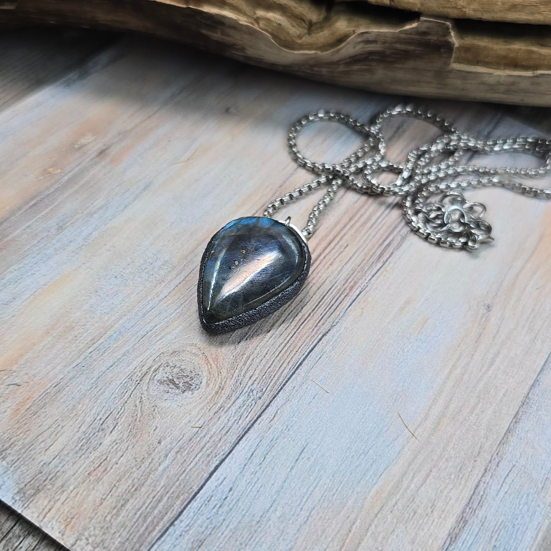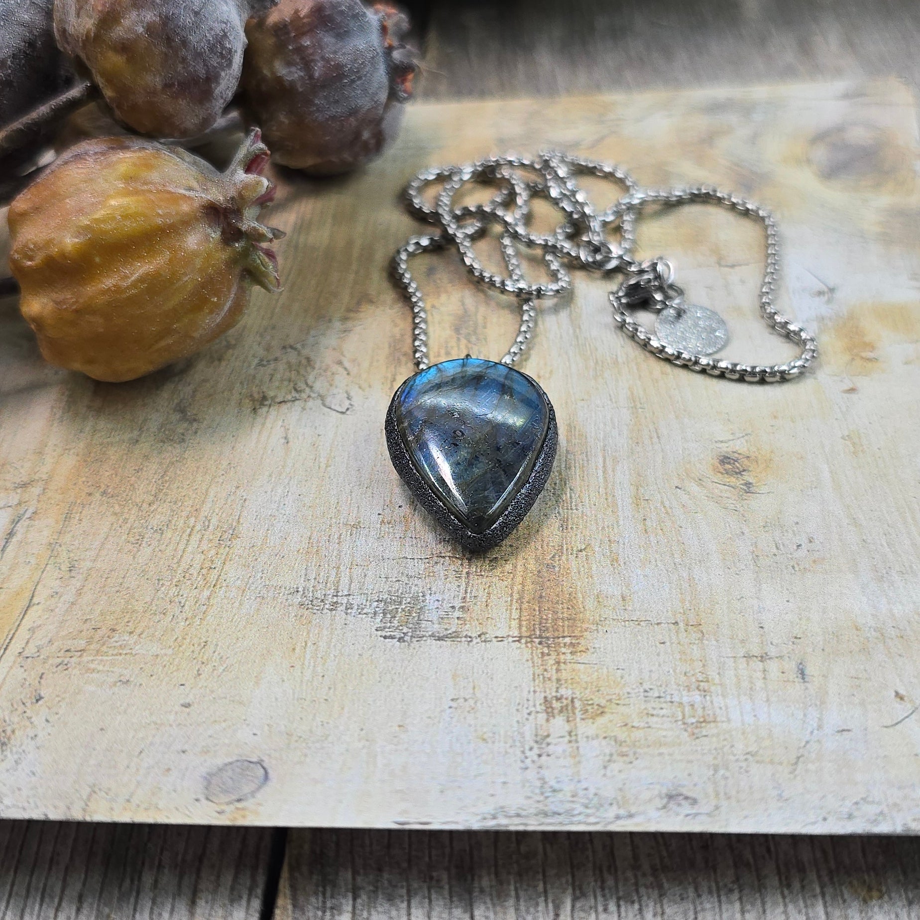 Labradorito pakabukas ant trumpesnės grandinėlės