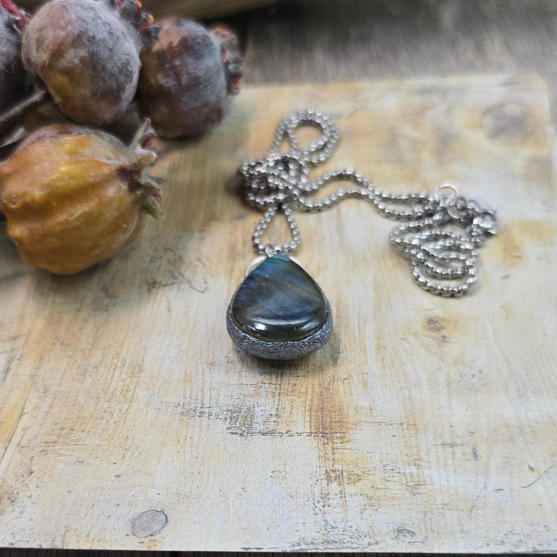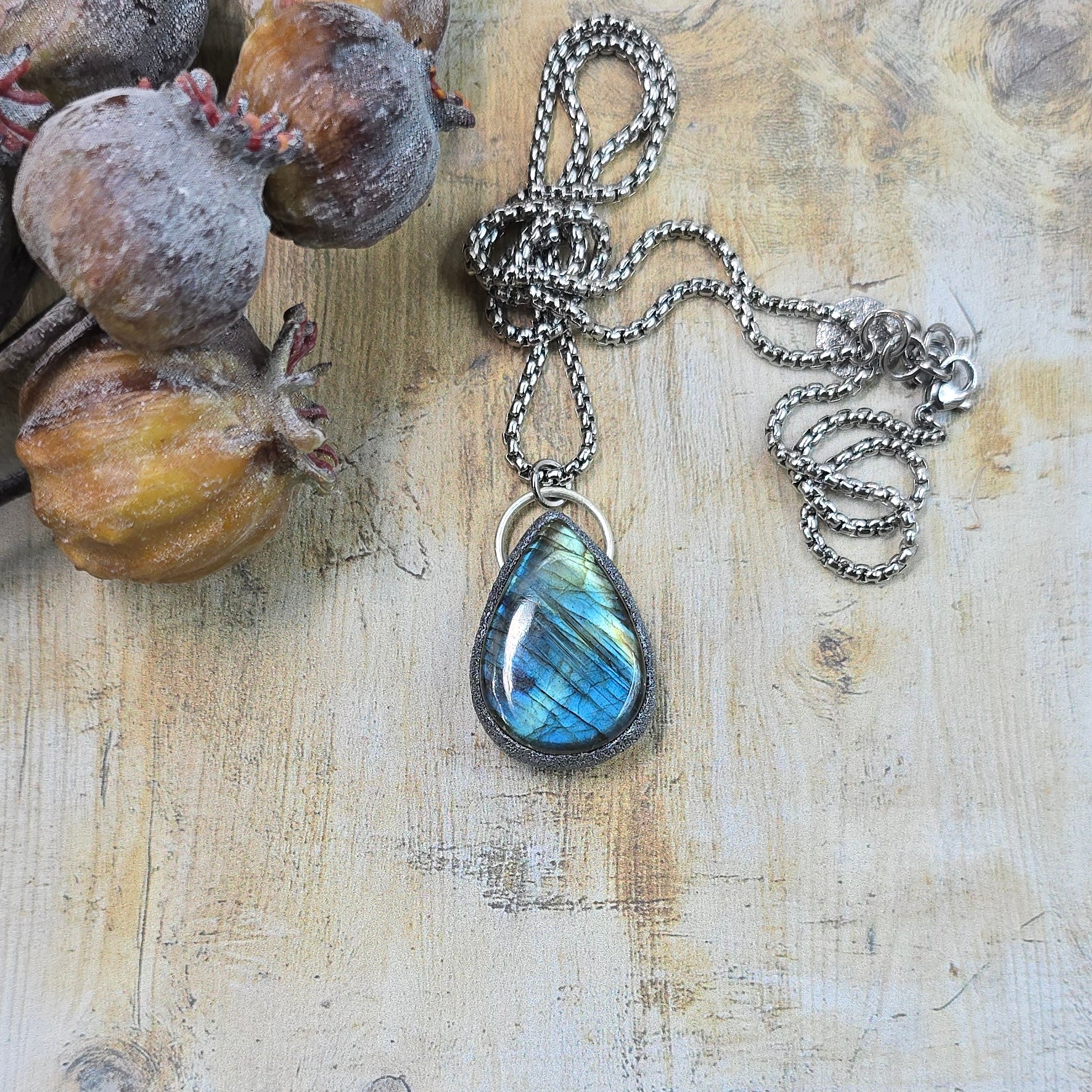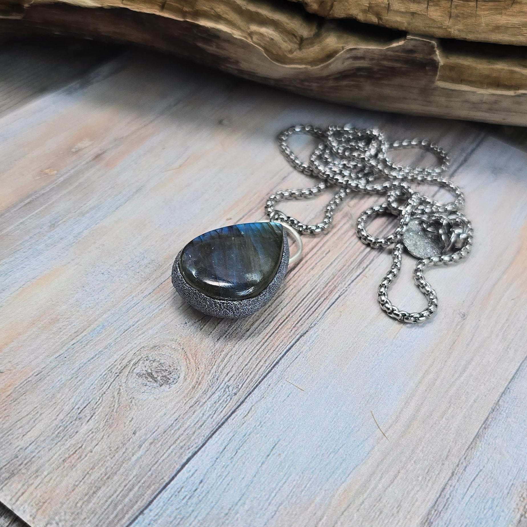 Labradorito pakabukas ant trumpesnės grandinėlės