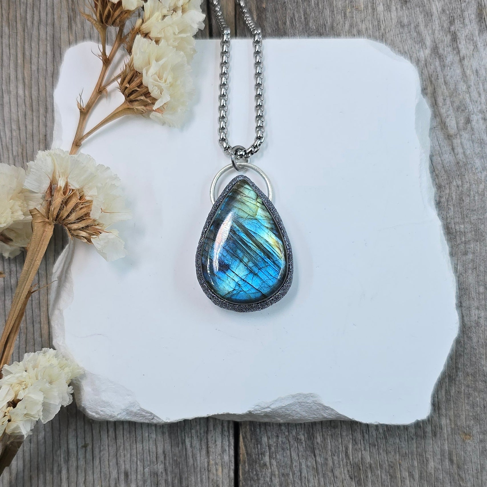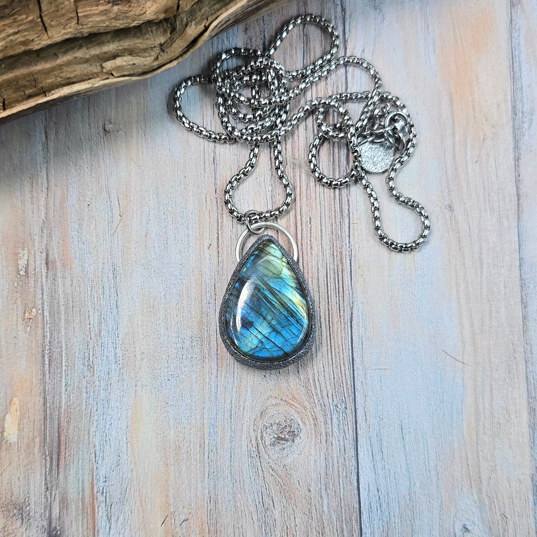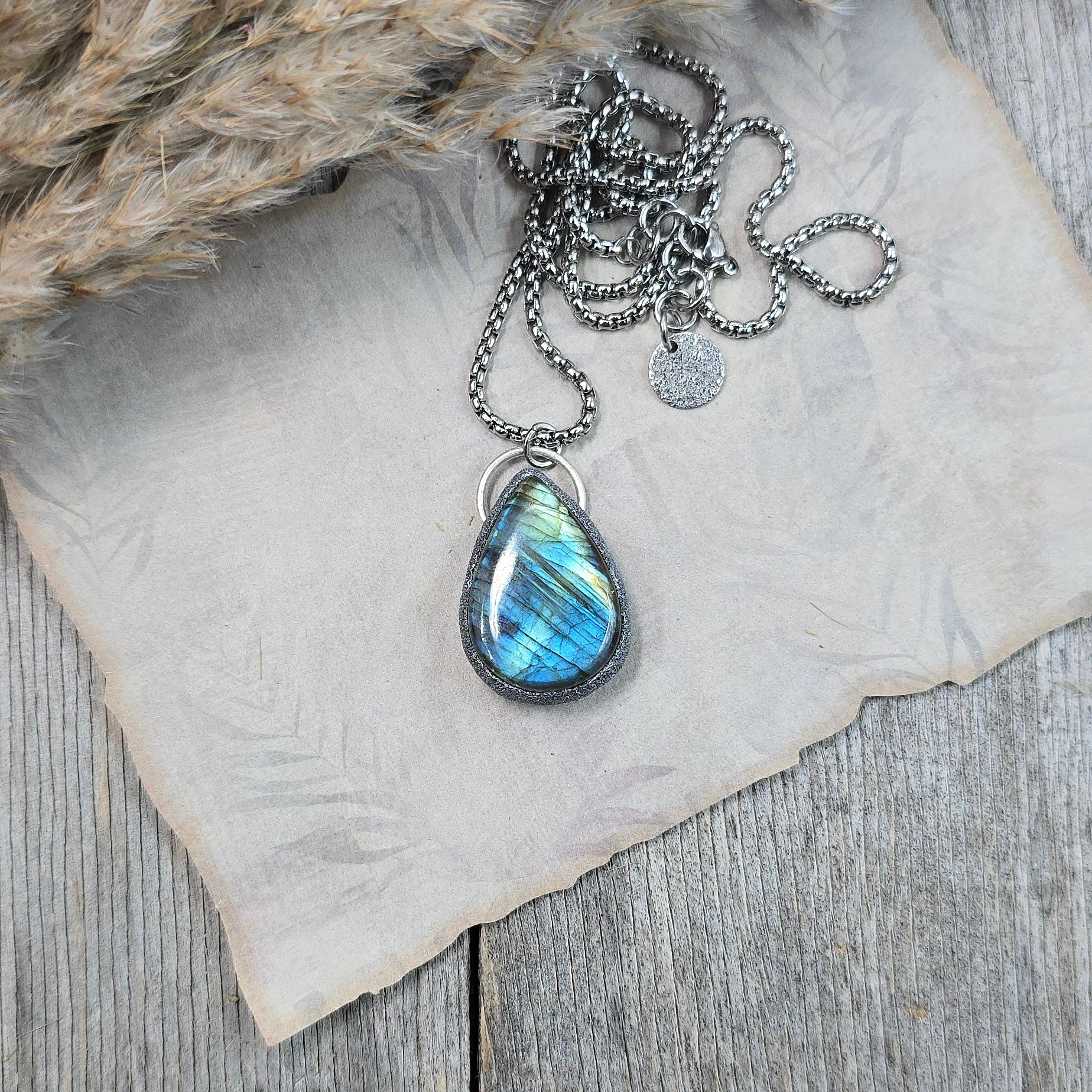 Labradorito pakabukas ant trumpesnės grandinėlės