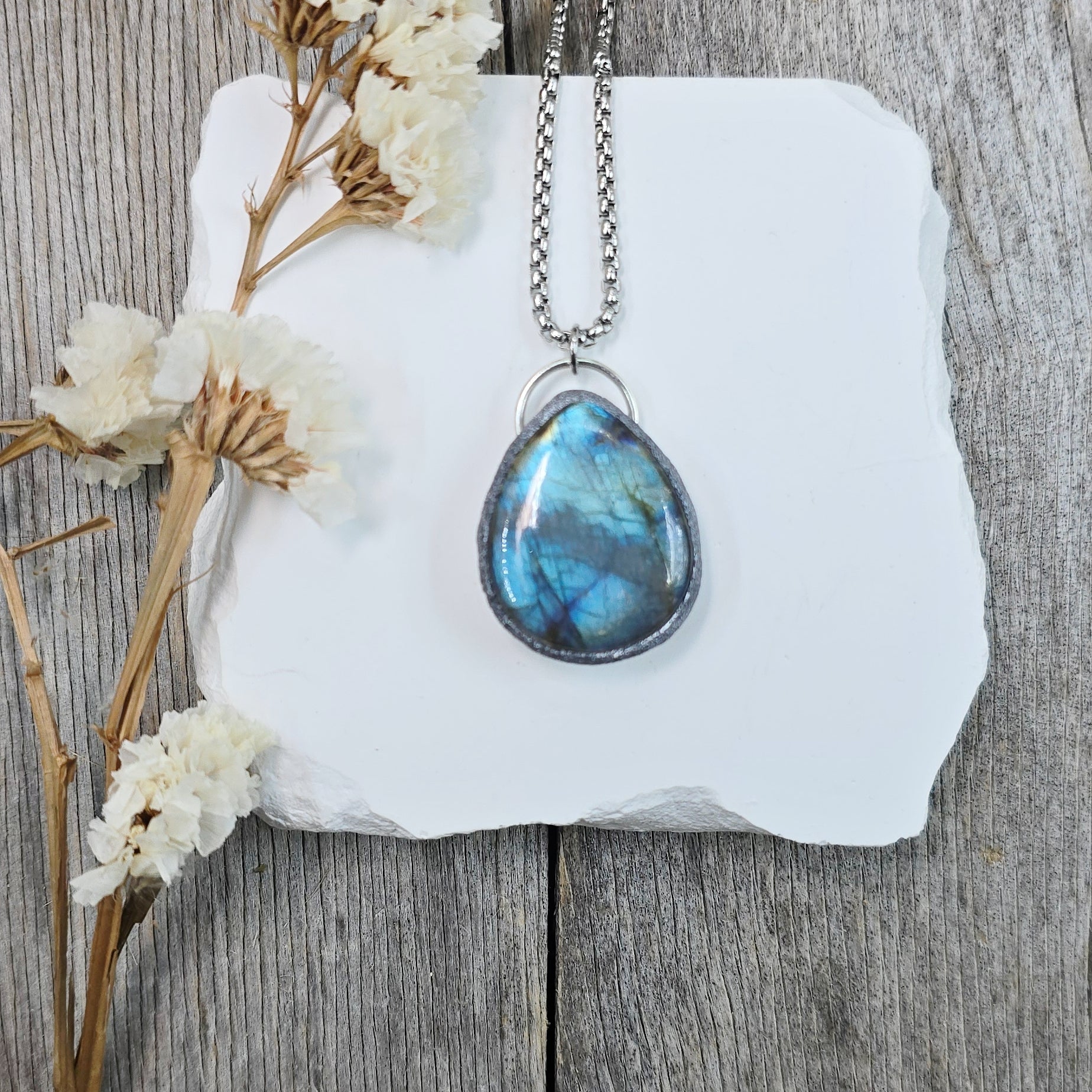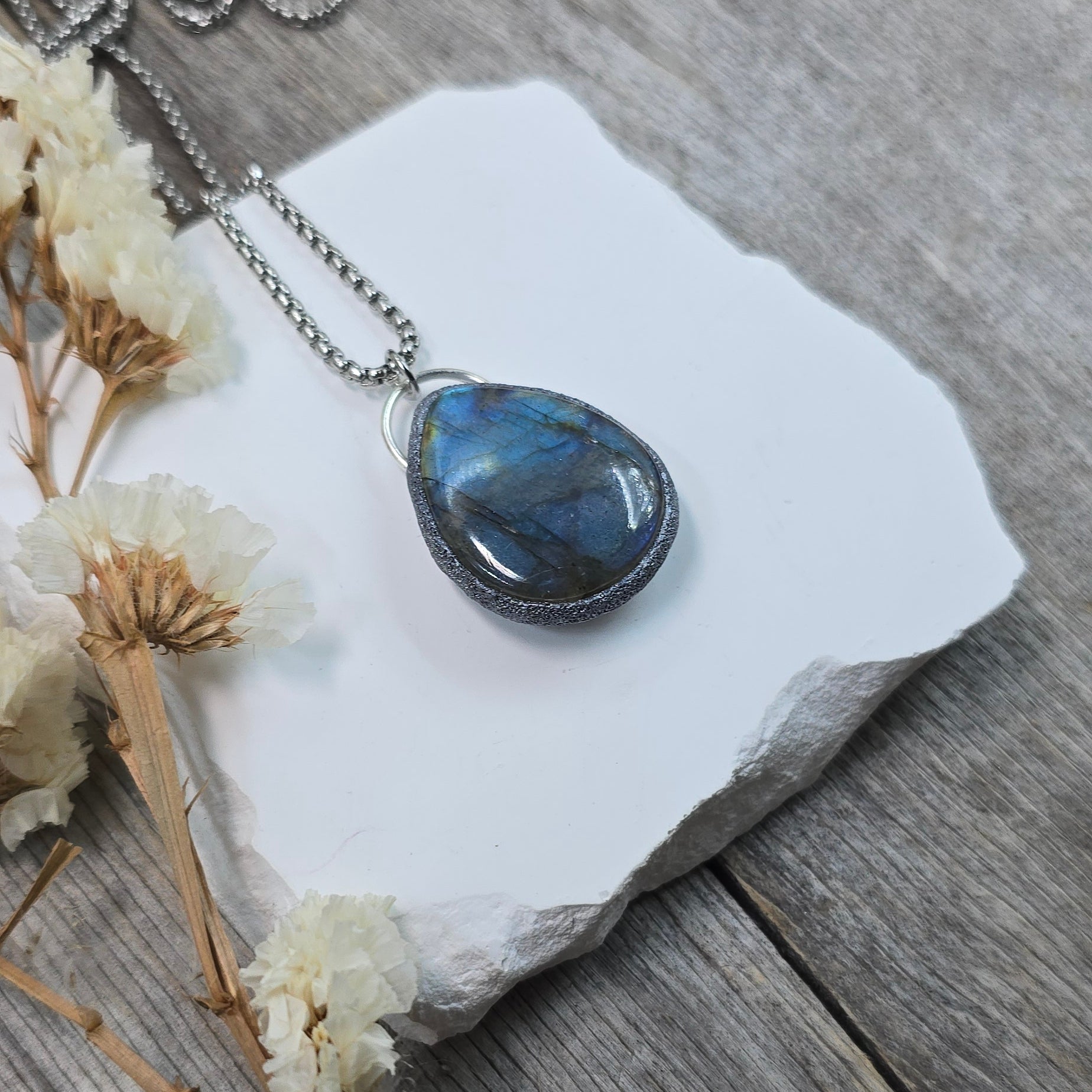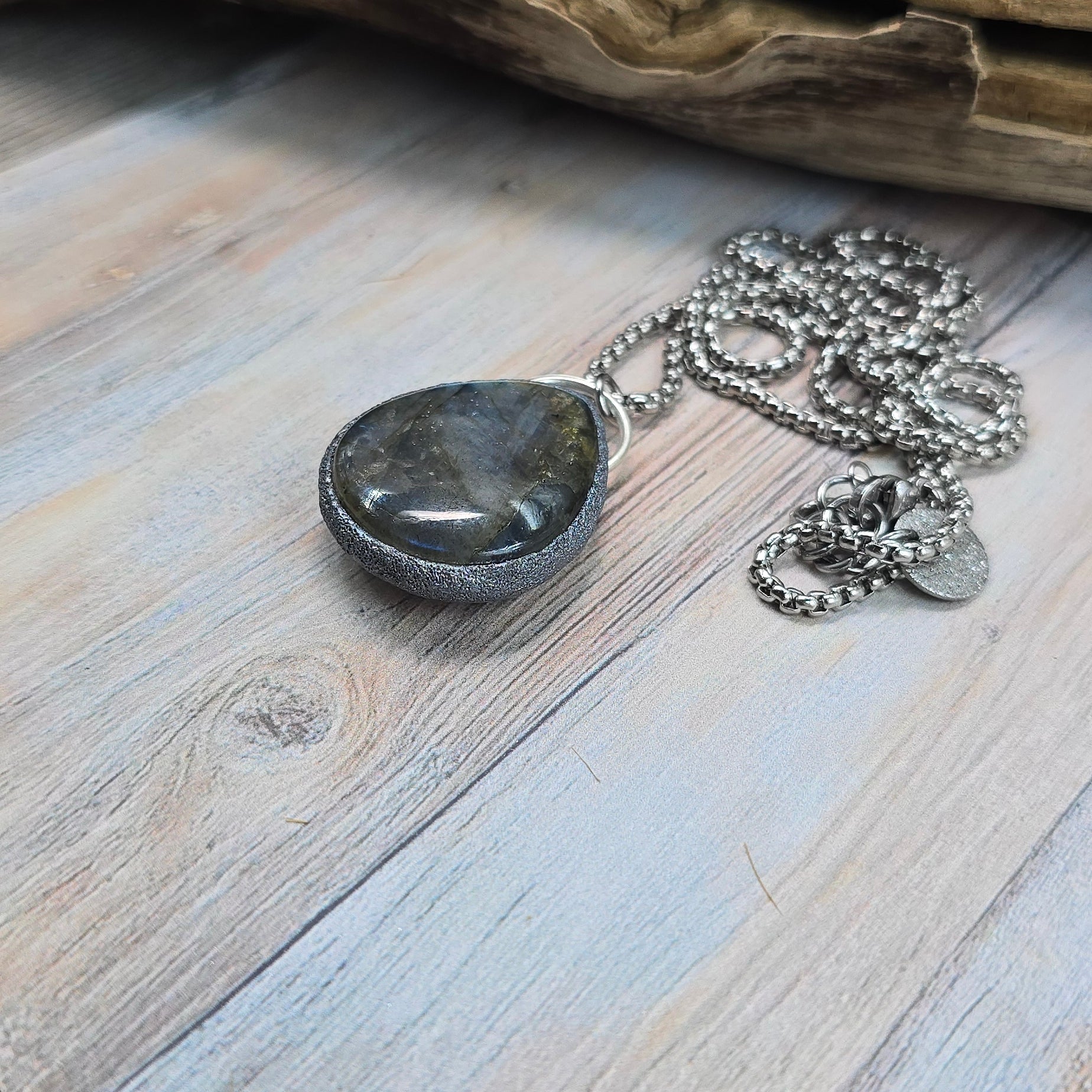 Labradorito pakabukas ant trumpesnės grandinėlės