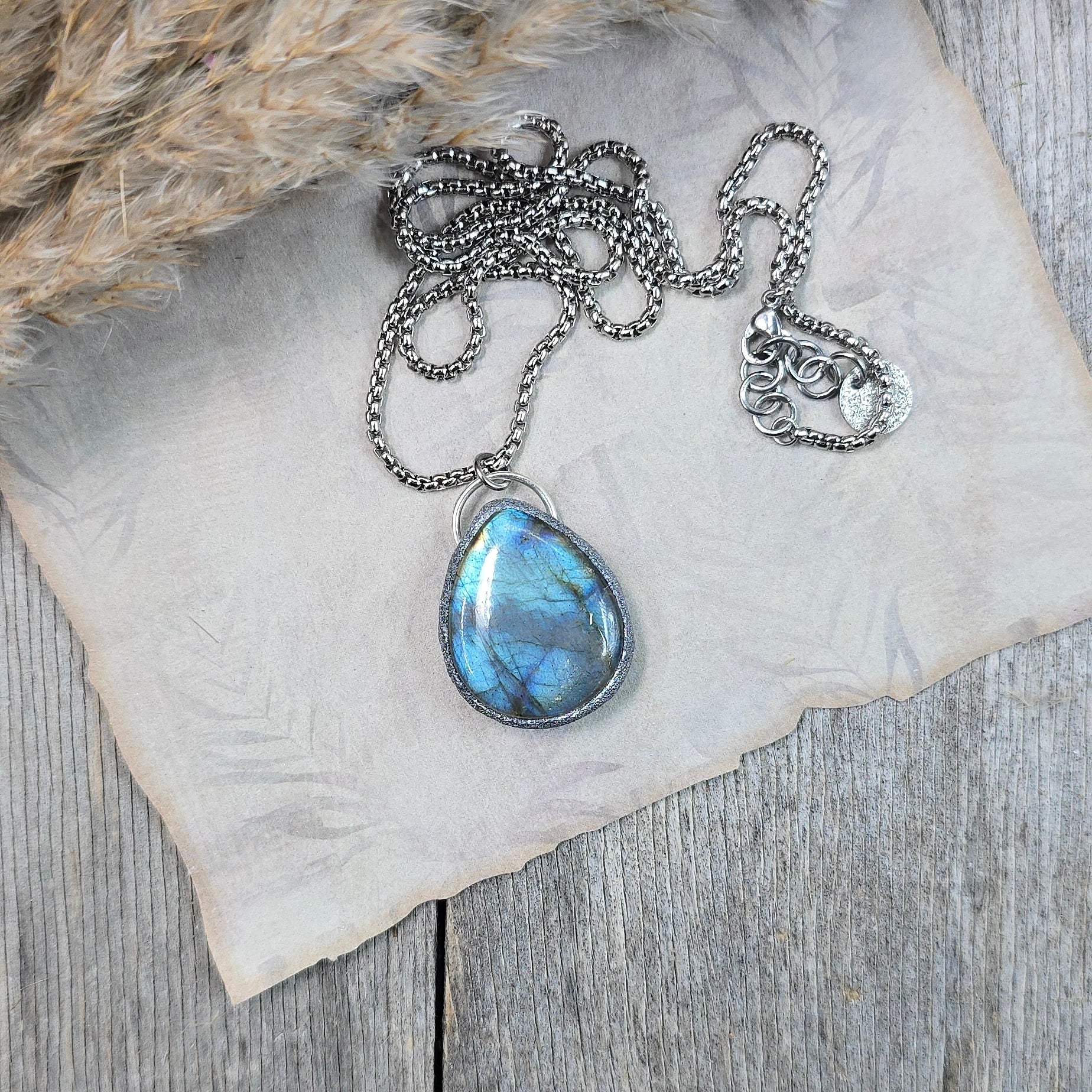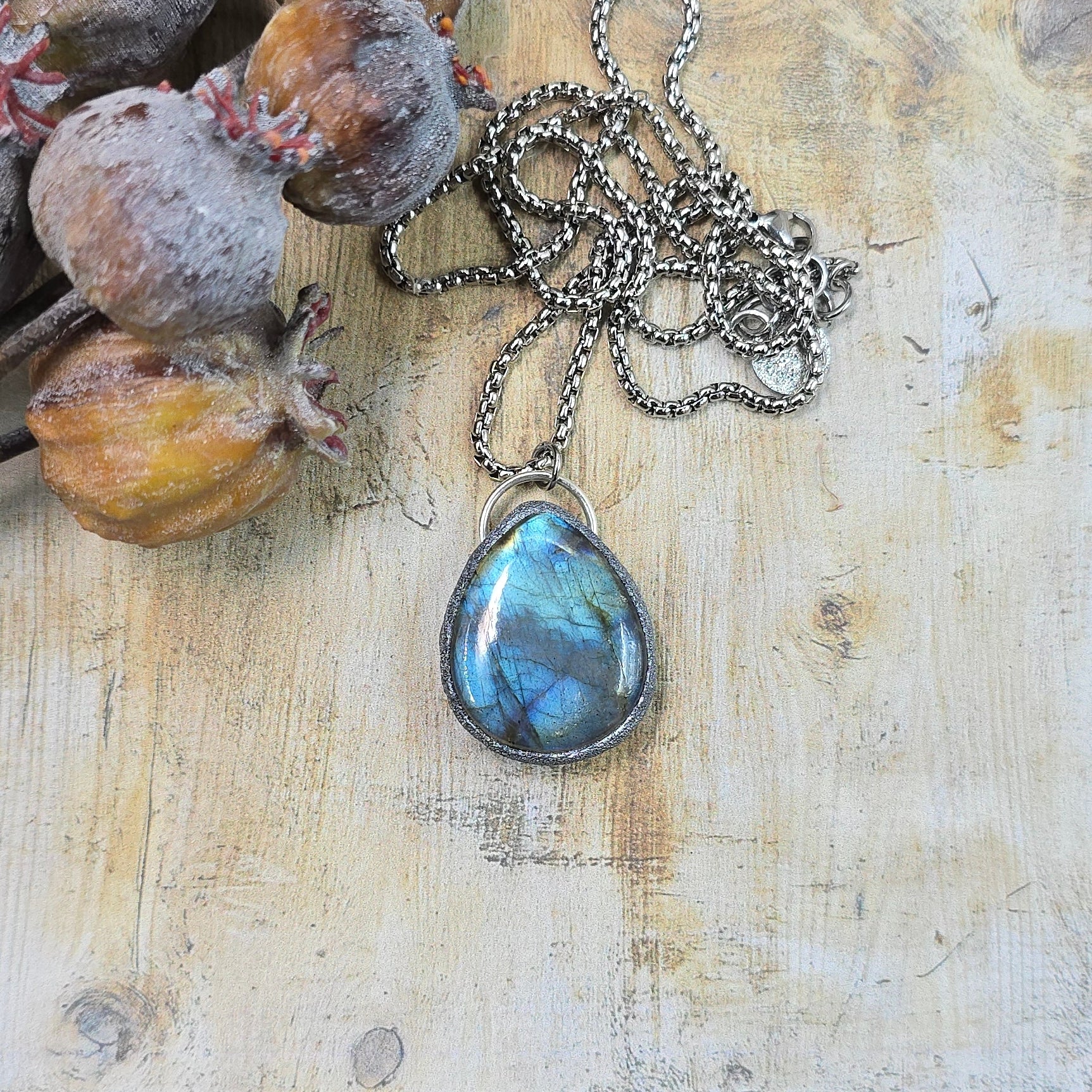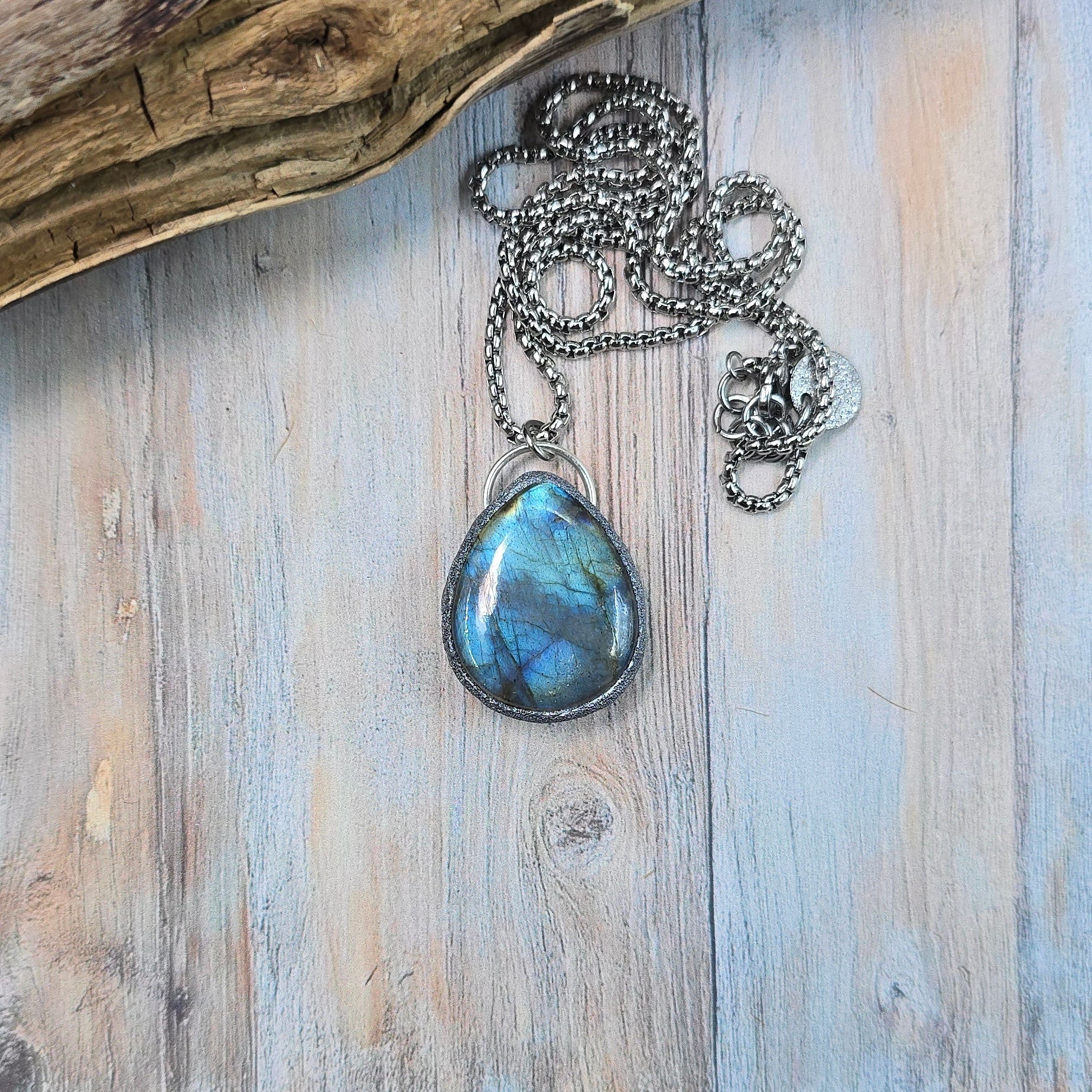 Labradorito pakabukas ant trumpesnės grandinėlės