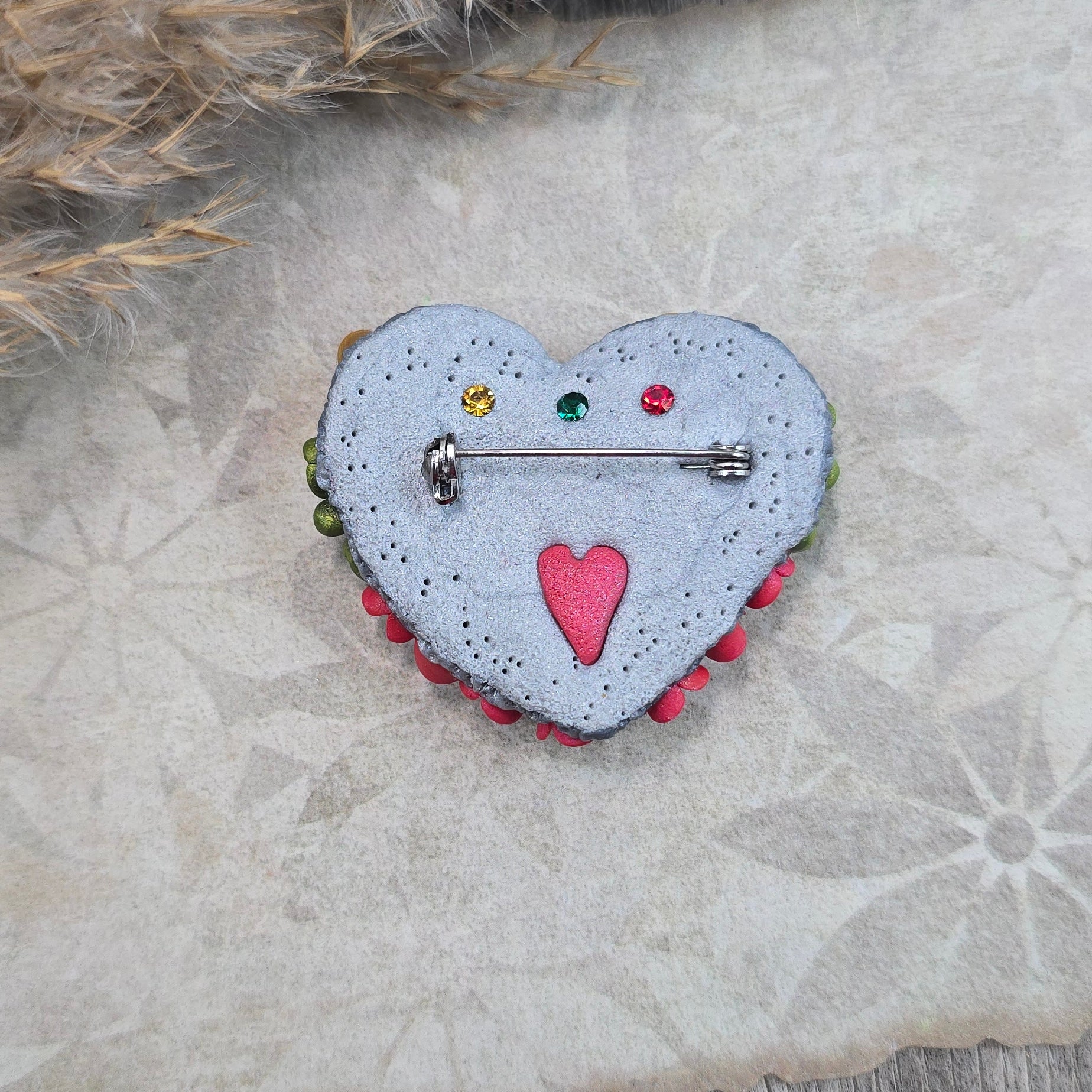 Rankų darbo sagė iš polimerinio molio.