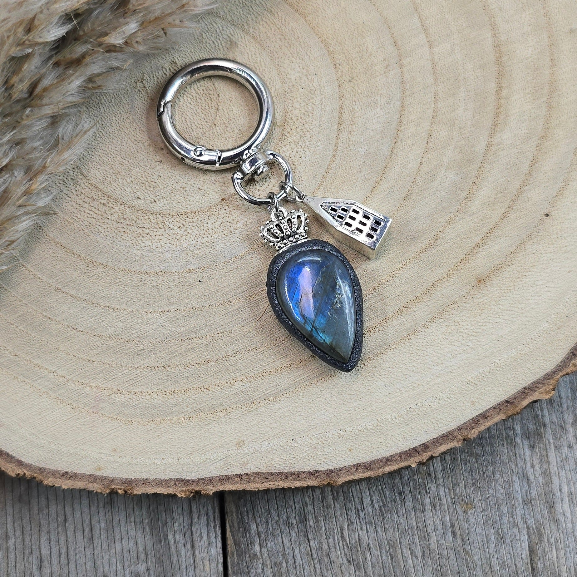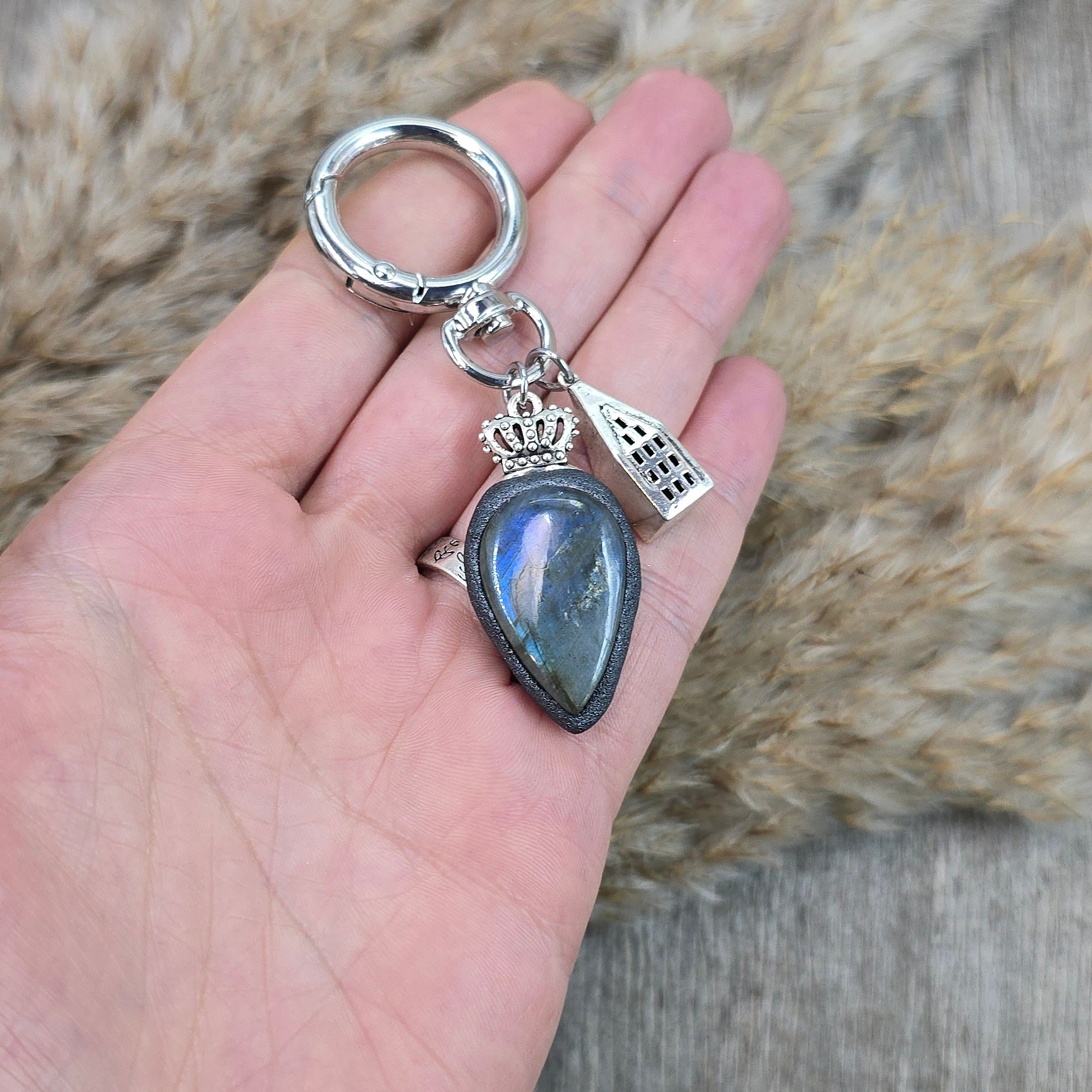 Šis nedidelis, bet ypatingas raktų pakabukas – tai ne tik papuošimas ar funkcionalus daiktas, bet ir tylus tavo ar mylimo žmogaus sargas. Jo širdyje slypi natūralus labradorito akmuo – akmuo, kuris nuo seno laikomas apsaugos, intuicijos ir vidinės stiprybės simboliu.