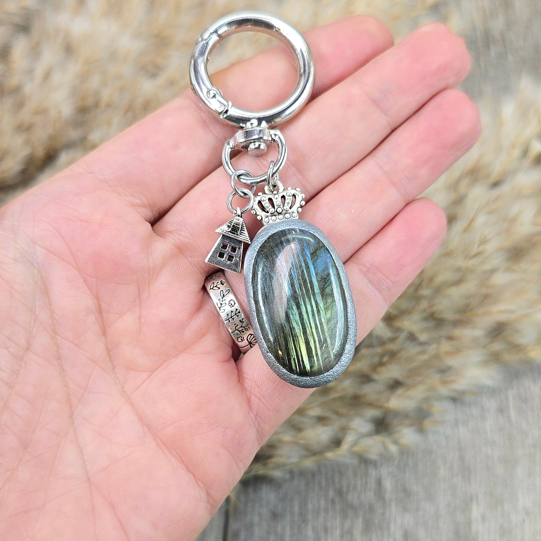 Raktų pakabukas su labradoritu