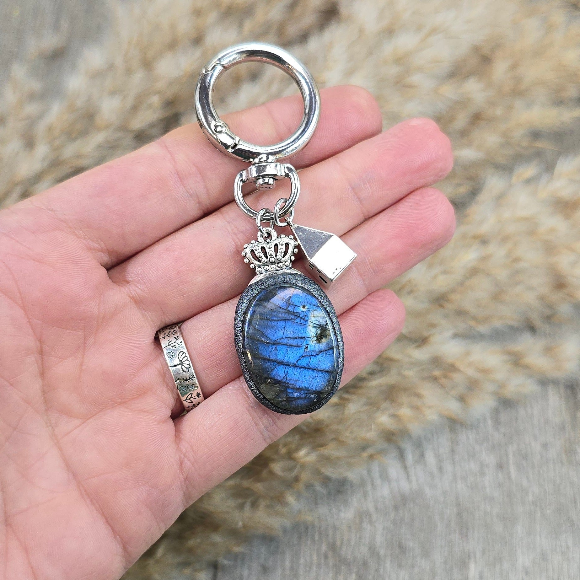 Šis nedidelis, bet ypatingas raktų pakabukas – tai ne tik papuošimas ar funkcionalus daiktas, bet ir tylus tavo ar mylimo žmogaus sargas. Jo širdyje slypi natūralus labradorito akmuo – akmuo, kuris nuo seno laikomas apsaugos, intuicijos ir vidinės stiprybės simboliu.
