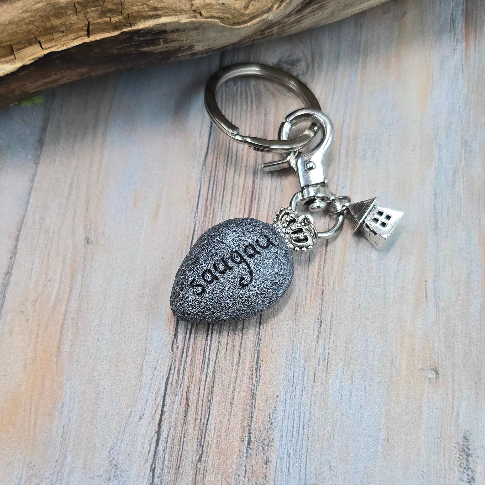 Šis nedidelis, bet ypatingas raktų pakabukas – tai ne tik papuošimas ar funkcionalus daiktas, bet ir tylus tavo ar mylimo žmogaus sargas. Jo širdyje slypi natūralus labradorito akmuo – akmuo, kuris nuo seno laikomas apsaugos, intuicijos ir vidinės stiprybės simboliu.